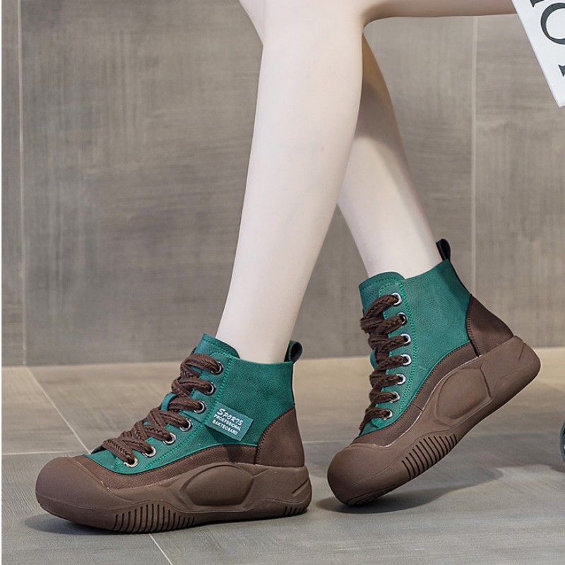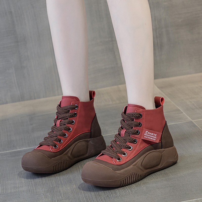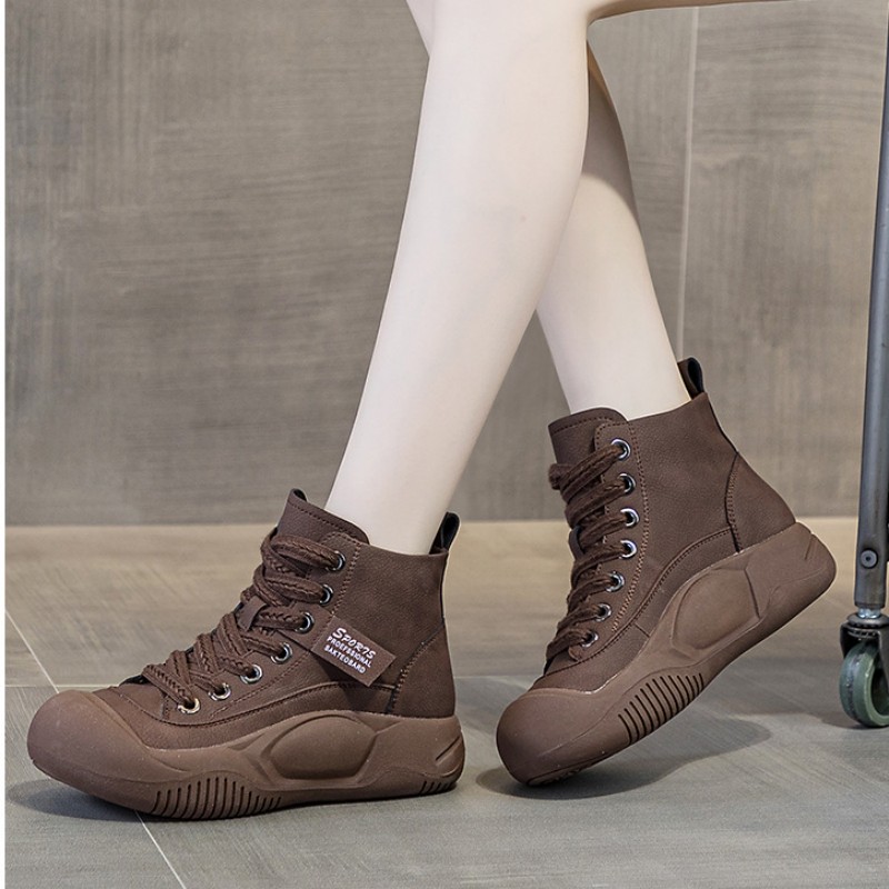 OHGC Spain small crowdleather women shoes 2023 autumn winter new thick bottom inner heightening sports casual shoes old daddy shoes-Taobao