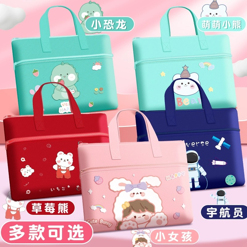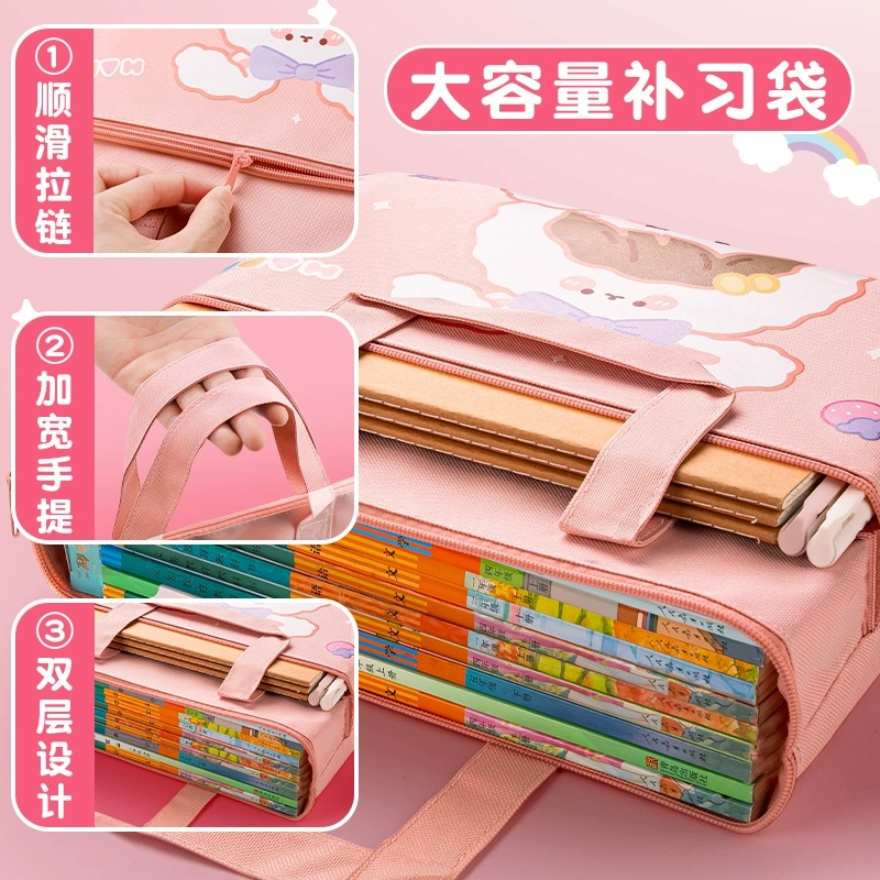 Click Bear Student Hand Bag Carry Book Bag Elementary School Student Canvas Bag Boy Girl Homework Bag Tutorial Bag Large Capacity Sap Bag Waterproof Cashier Bag Children Zipped-up kit 3114-Taobao