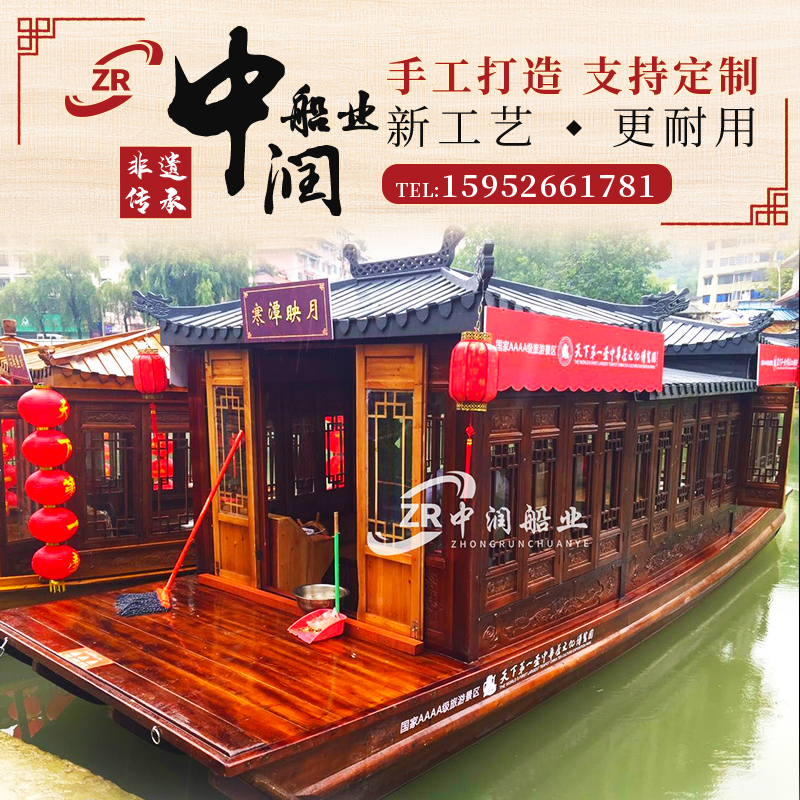 Wooden Boat Painting Large Electric Imitation Antique Sightseeing Tourism Water Catering Double Deck Reception Conference Real GRP House-Taobao