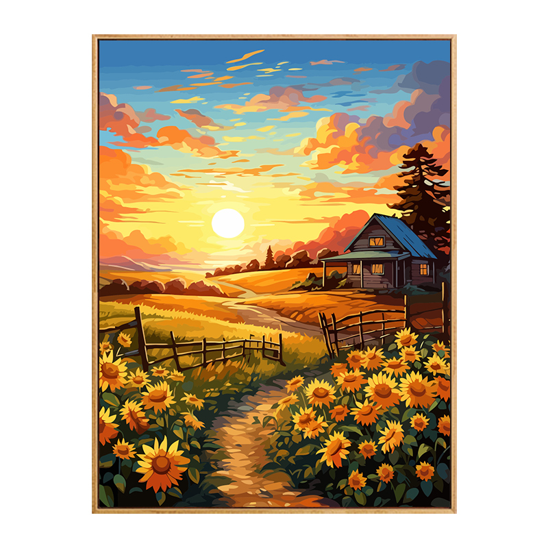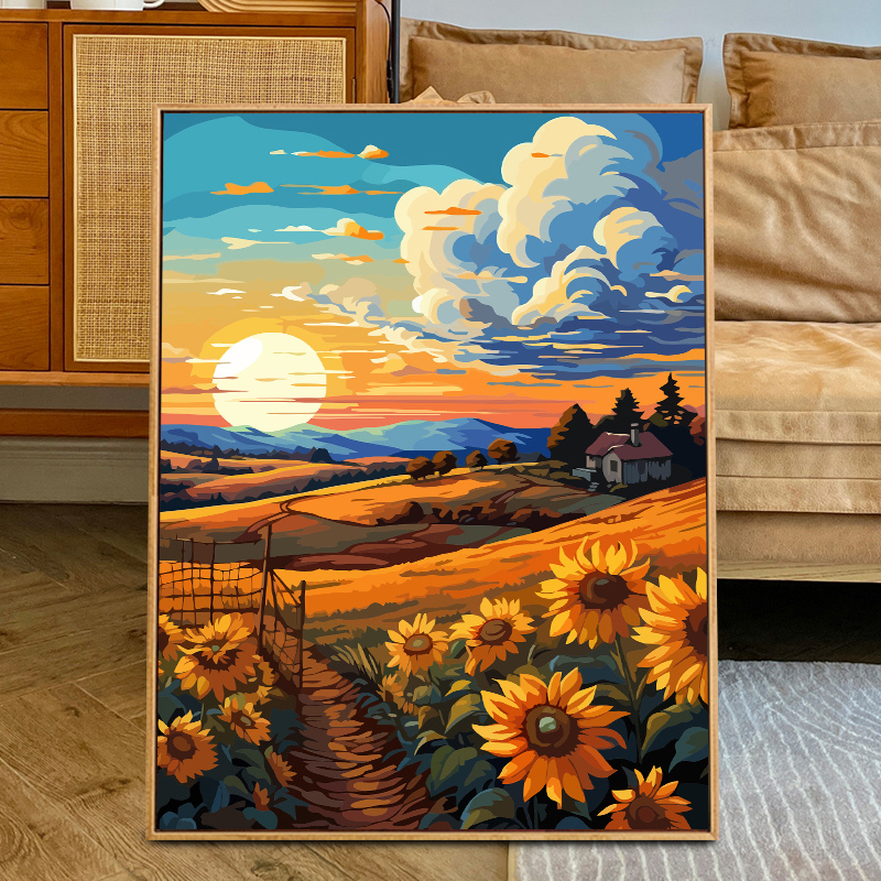 Sunflower Scenery Diy Digital Oil Painting Oil Color Propylene Decoration Hanging Draw Filling color Artisanal Hand Painted Advanced-Taobao