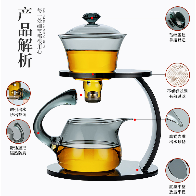 Glass Kung Fu Tea Cup Suit Home Sloth Automatic Tea Set Upmarket Minimyo Suction Teapot Tea Deity of tea-Taobao
