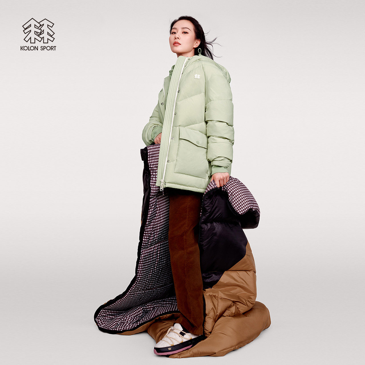 (Liu Poetry in the same section) KOLON SPORT CAN DOWN Down Female Outdoor Splash Water Goose Down Loose Down Jacket-Taobao