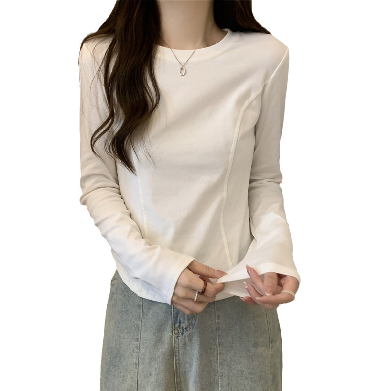 Thread Develvet white irregular positive shoulder long sleeve t-shirt female autumn winter new inner hitch undershirt short blouses-Taobao