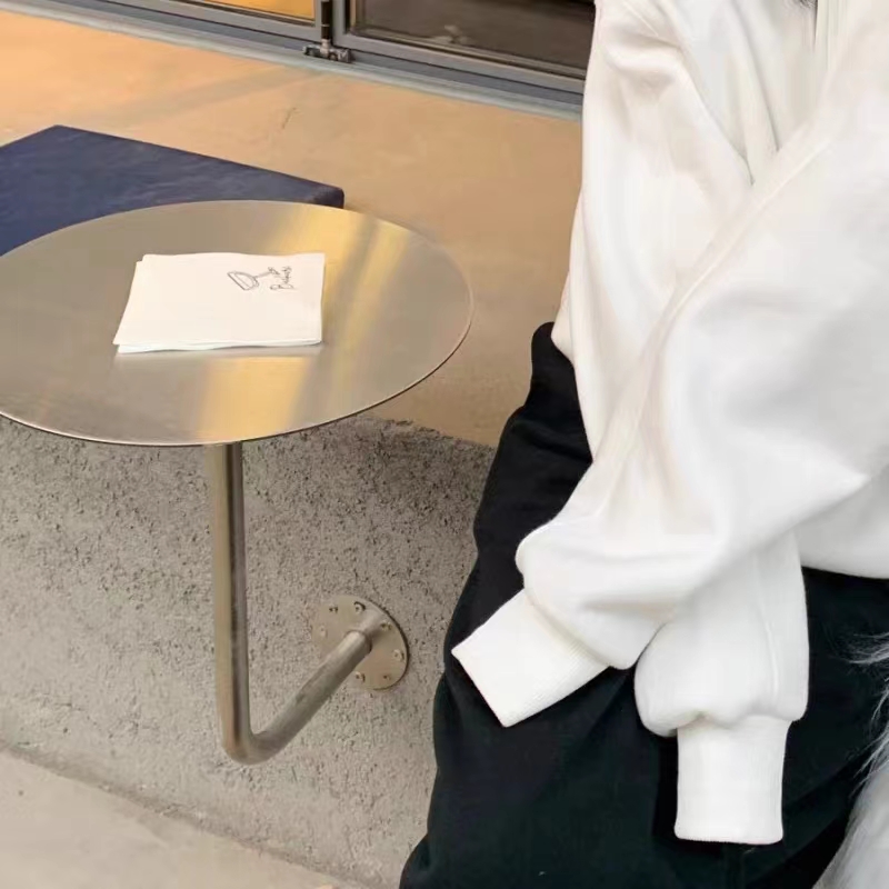 Minimalist modern milk tea shop café seat table close by wall wall-mounted table Bar clear bar with small round table-Taobao