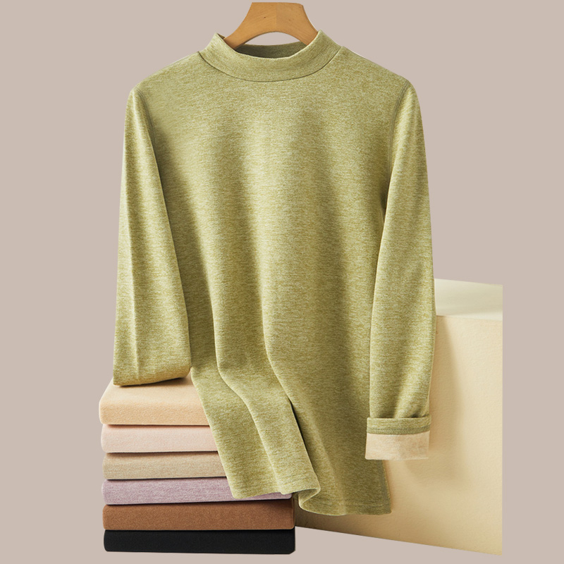 Duvet Warm Suit Silk Cashmere Semi-high Collar Autumn Clothes Autumn Pants Autumn Winter Lingerie Fever Lady's undershirt-Taobao