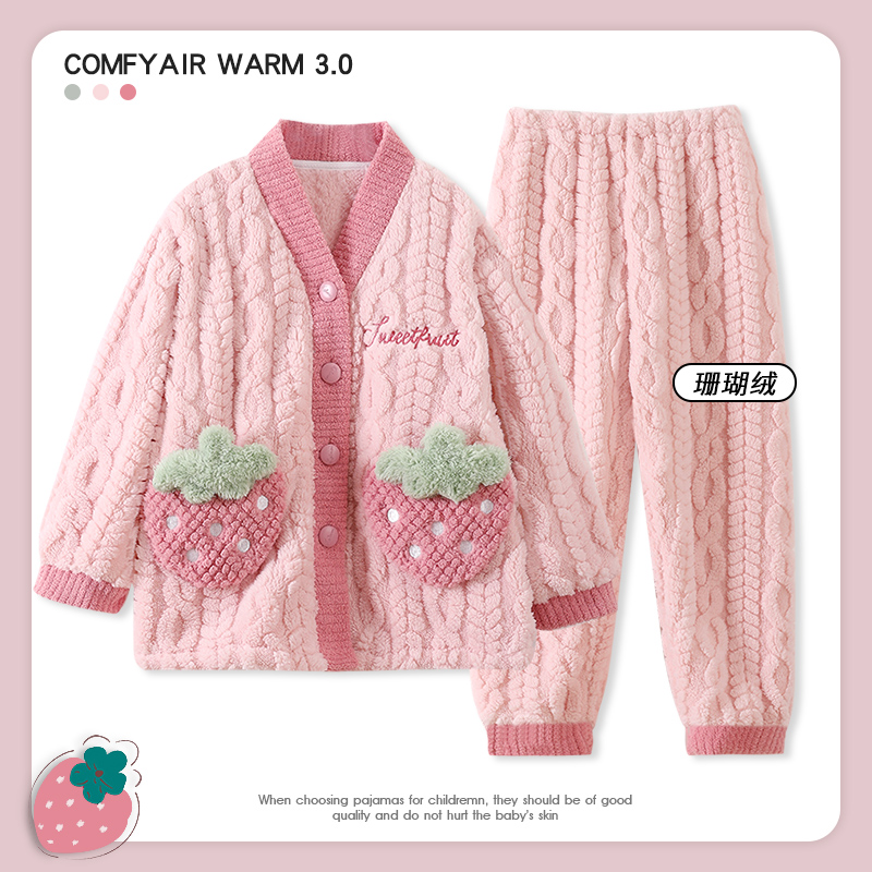 Children's autumn winter style pyjamas suit girl thickened flannel winter 2023 new girl coral suede home clothes-Taobao