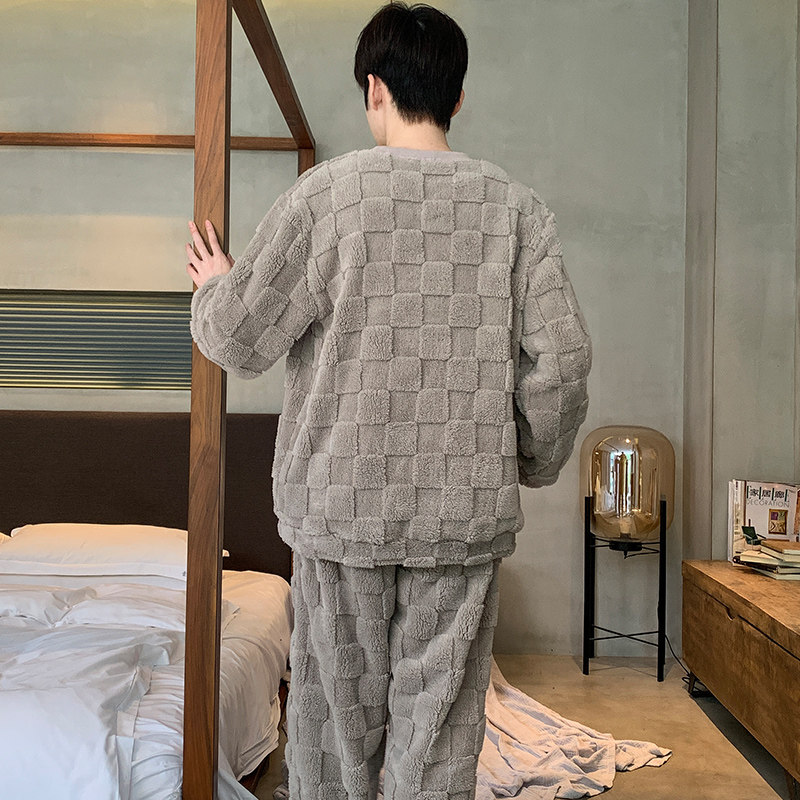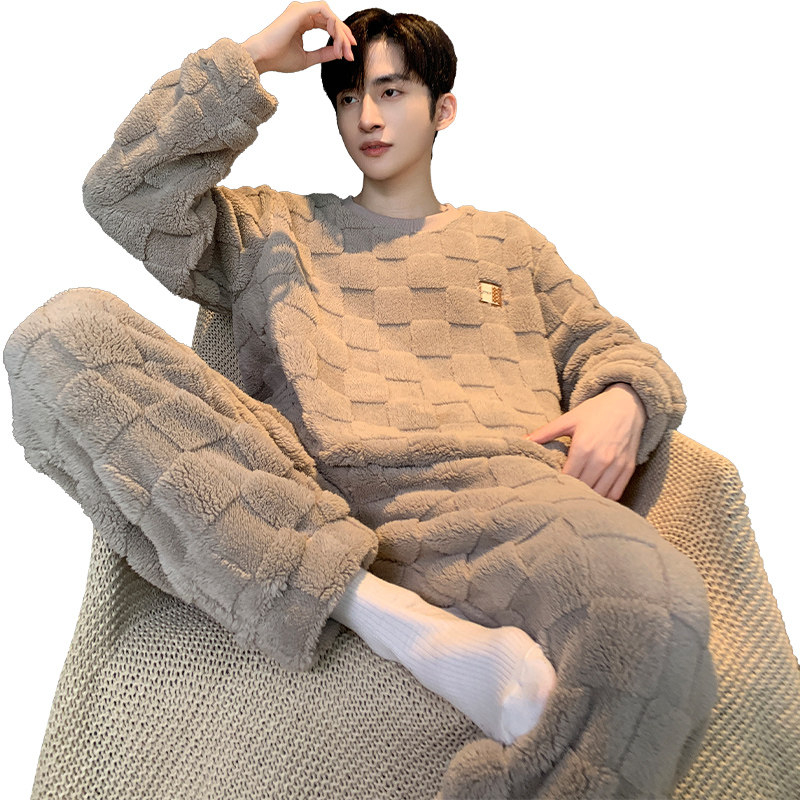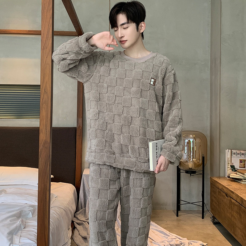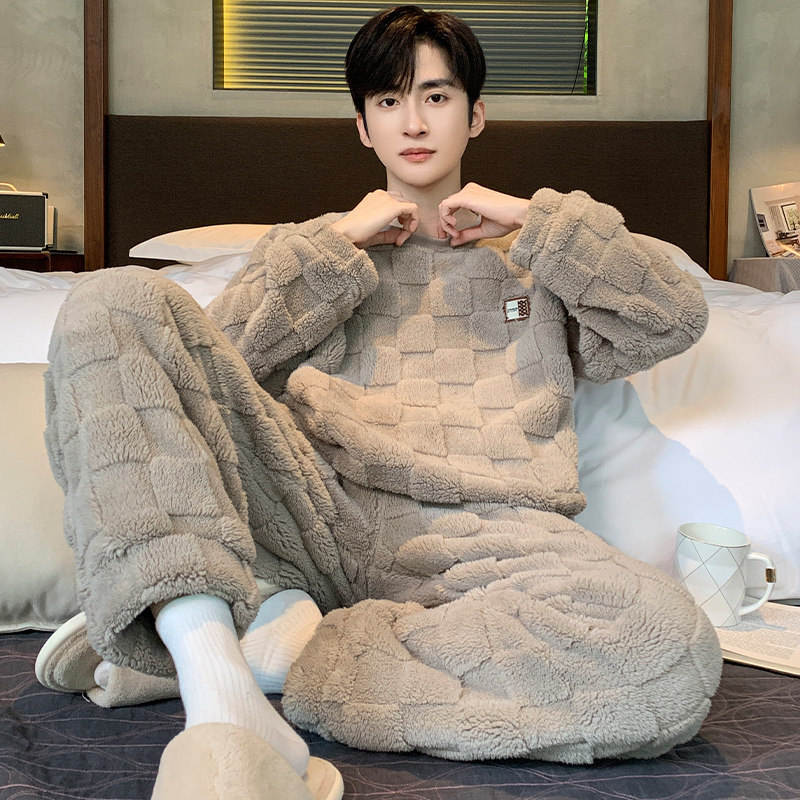 2023 new coral suede pyjamas men's autumn winter plus suede thickened winter teen boys' home suits suit-Taobao