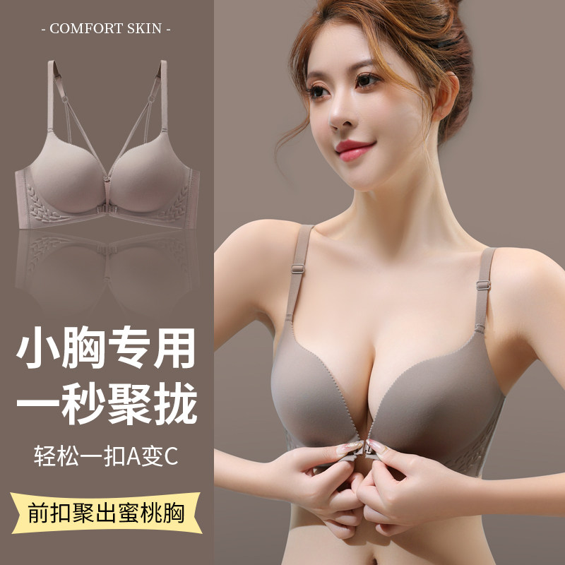 No-mark front buckle underwear female small breasts gather with large flat breasted special bra anti-sagging and auxiliary milk without steel ring bra-Taobao