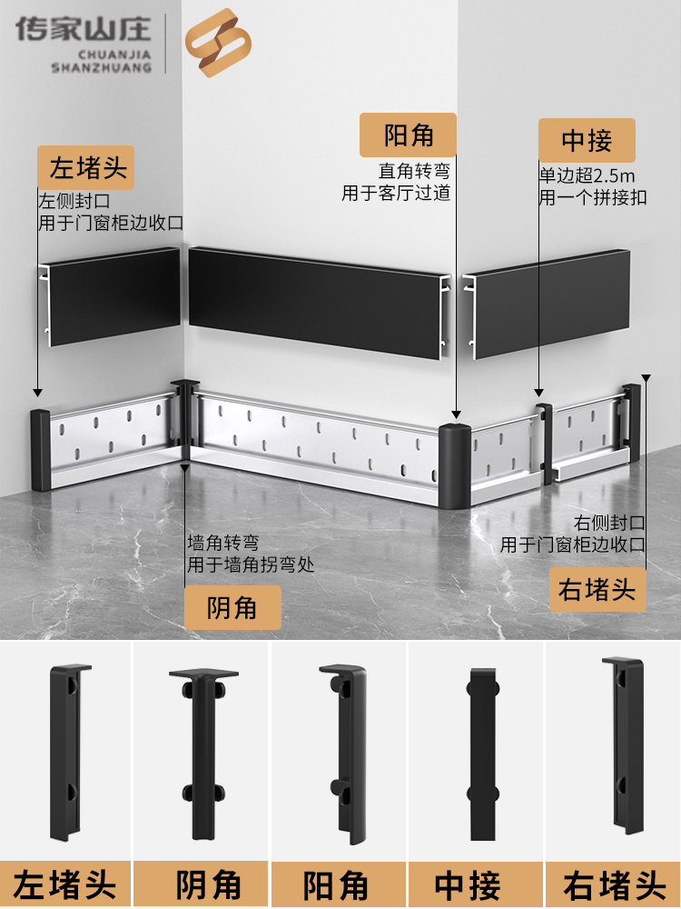 Aluminum alloy ultra-thin extremely narrow no-mark skirting metal stainless steel ground wire home black and white skirting board delivery accessories-Taobao