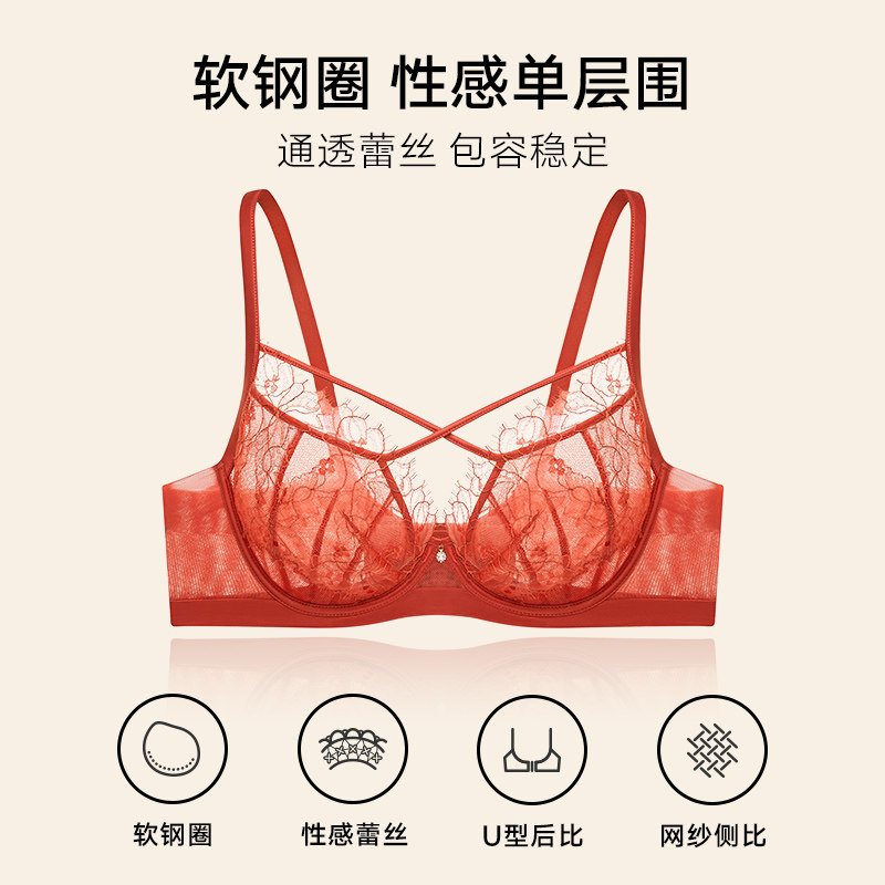 Ms. Manneffen anti-bump monolayer surrounding light and thin breathable bra large chest display small underwear bra 20840598-Taobao