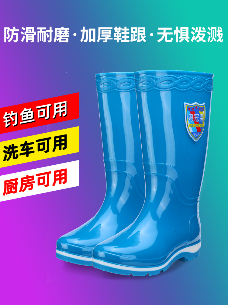 2023 new high cylinder rain shoes ladies anti-slip waterproof thick bottom rubber shoes catch-up to sea adult long with velvet soft bottom rain boots-Taobao