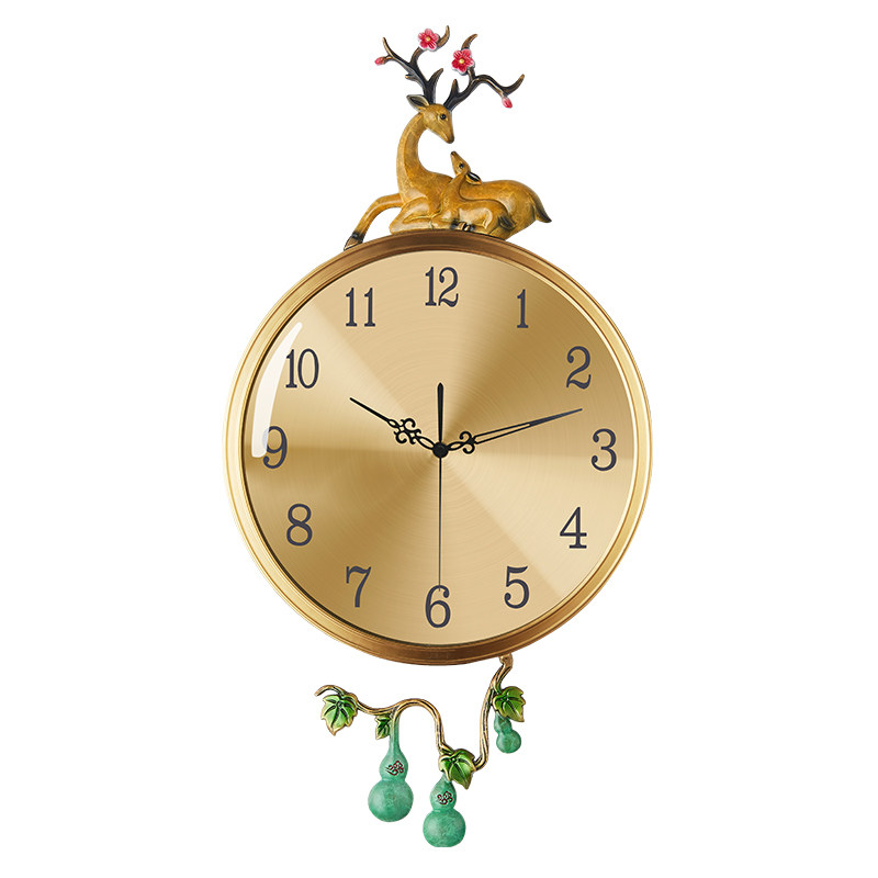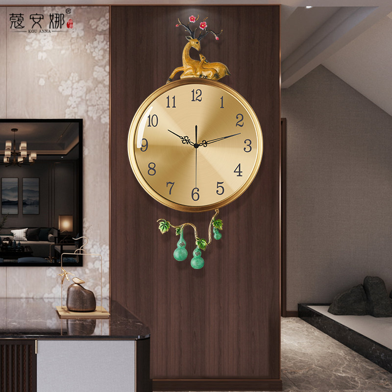 New Chinese Brass Foe Deer Hanging Clock Living Room Light Lavish Decoration Hanging Watch Home New Fashion Watch Mute Quartz Clock-Taobao