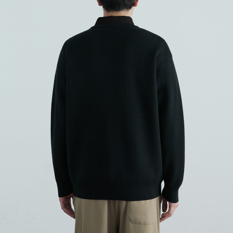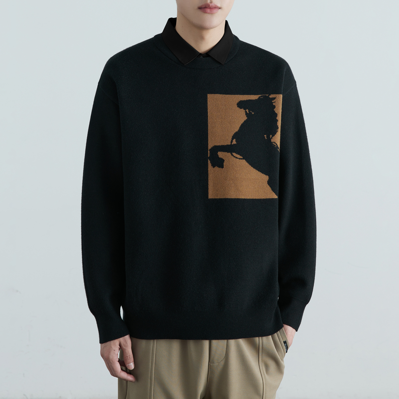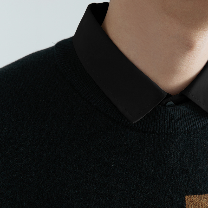 WOOG2005 shirt collar fake two black sweater men's 2023 autumn winter new micro loose jacquard knit-weaters-Taobao