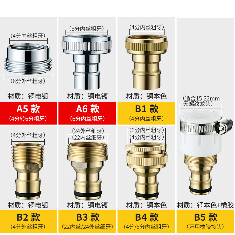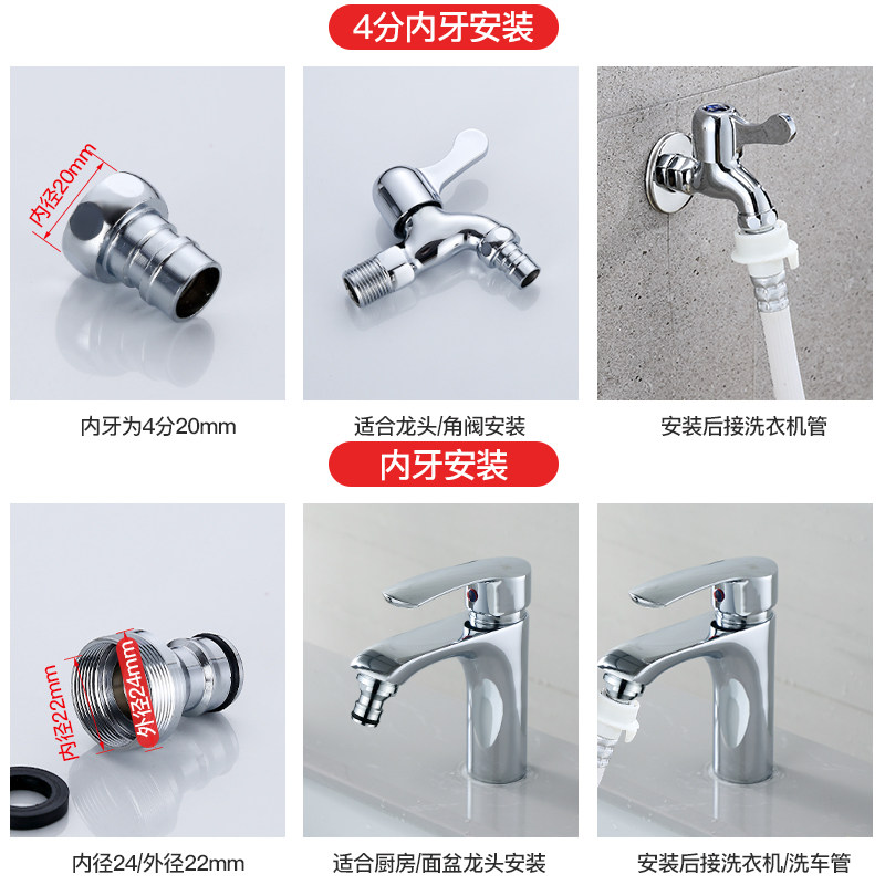 Total Copper Washing Machine Mouth Joint Water Nozzle Converter Accessories 4 Taps Turn Connector Water Intake Pipe Pacifier-Taobao