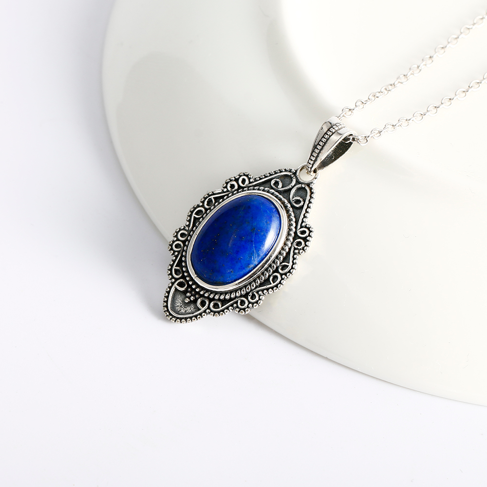Cross-border Heat Sale Retro Hidden Silver Necklace Inlaid Natural Rafeldspar Moon Light Stone Pendant Bronze Necklace-Taobao