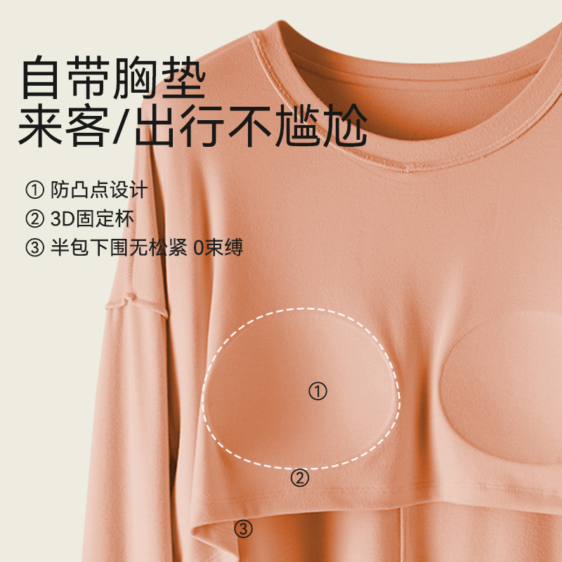 With Chest Cushion Pyjamas Woman Autumn Winter Style 2023 New Sleeping Skirt Duvet Self fever Libra pregnant woman Long sleeves Home Residence Dress-Taobao