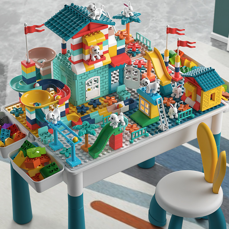 (Upgrade large number)❤building blocks table 1 chair 300 animals large grain 143 chute large grain (upgrading large number)❤building blocks table 2 chairs 300 animals big grain 143 chute big
