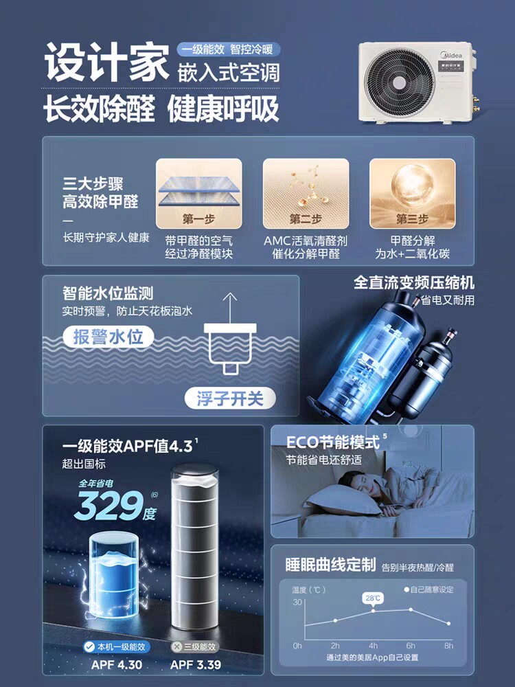 Beauty central air conditioning Home wind pipe machine One drag one frequency conversion Class design Home Big 3 Apart Formaldehyde Air Conditioning-Taobao