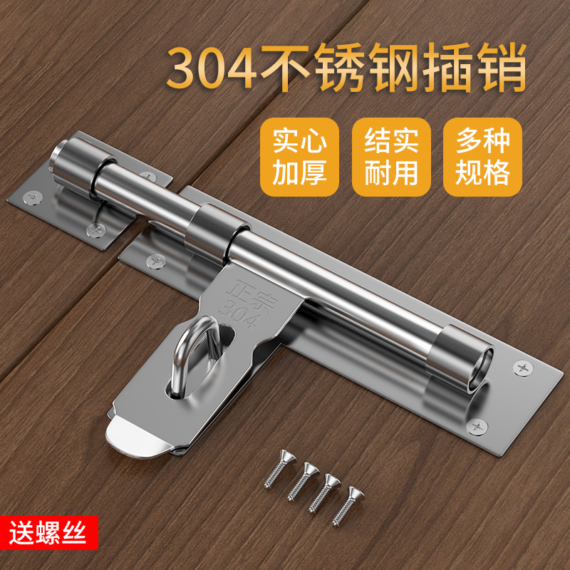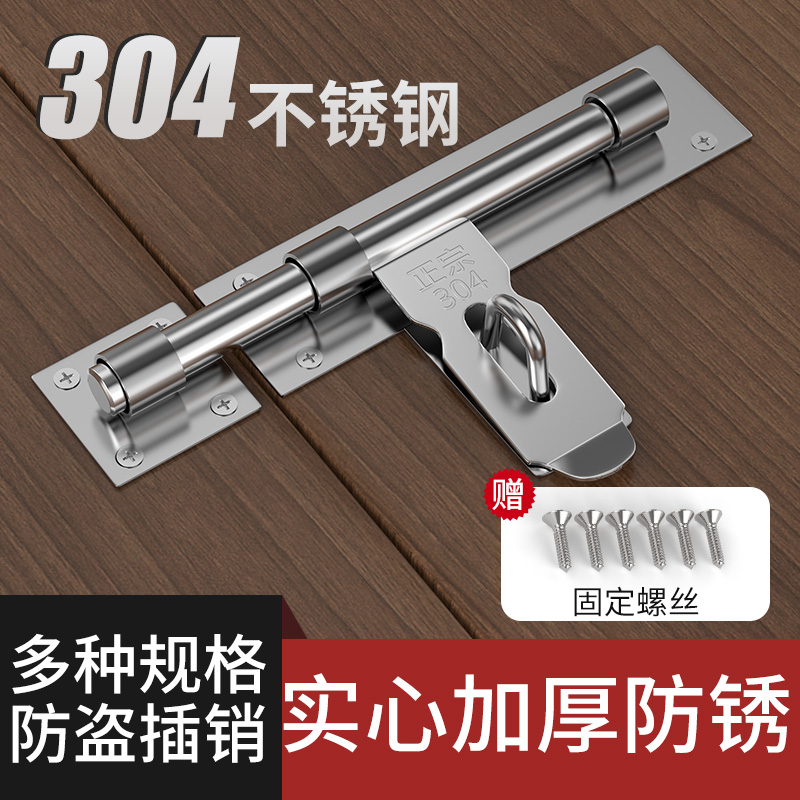 304 stainless steel bolt door locking wood doors and windows toilet burglar-proof thickened door bolt door buttoned with fixed inserts-Taobao