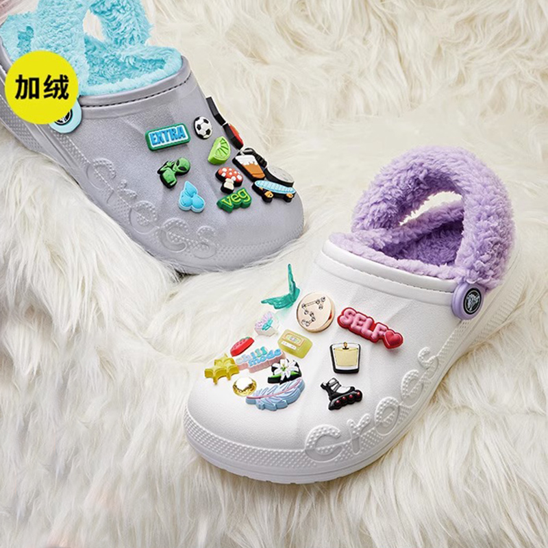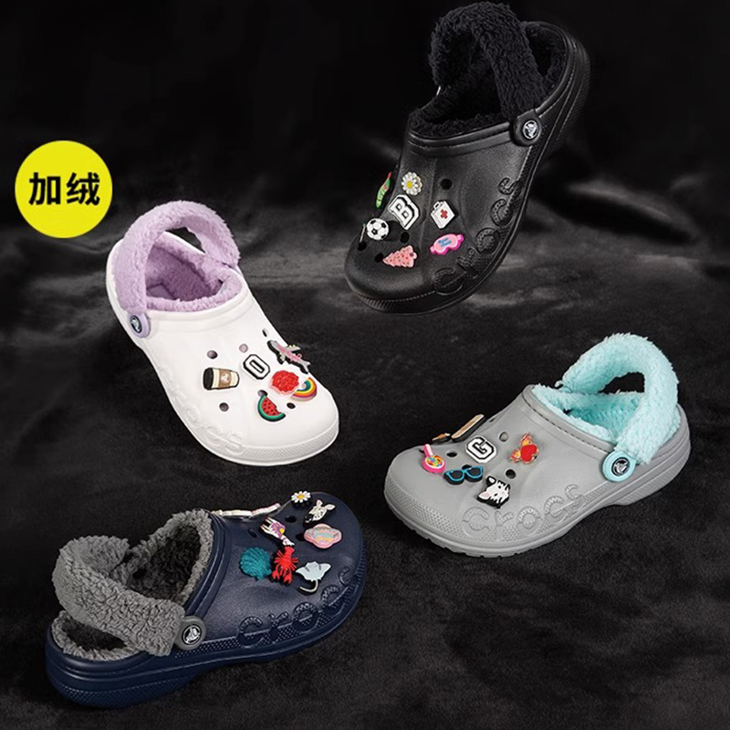 Crocs Card Loci Warm Cotton Plus Suede Dongle Dongle Shoes Men's Shoes Women Shoes Winter New Beja Warm Fur Cotton Slippers-Taobao