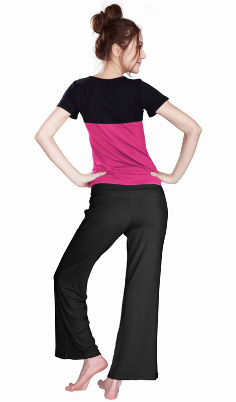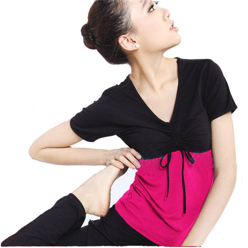 Modale collage short sleeve yoga suit Jump to women's big ruler code Practice Fitness fitness Fitness Clothing can be inserted in the chest