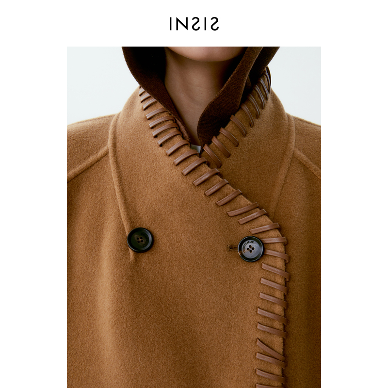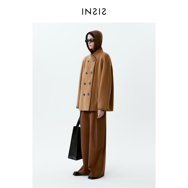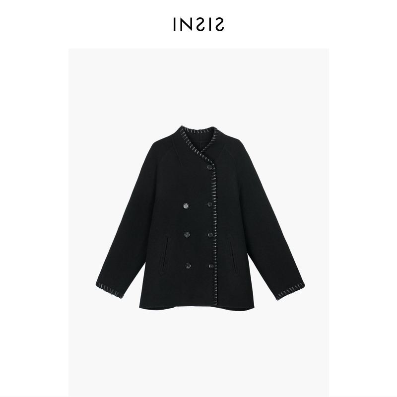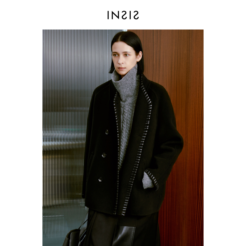 INSIS FEMME still-luxurious wool cashmere double sided Winter new rope loops collar double-row buttoned short coat woman-Taobao