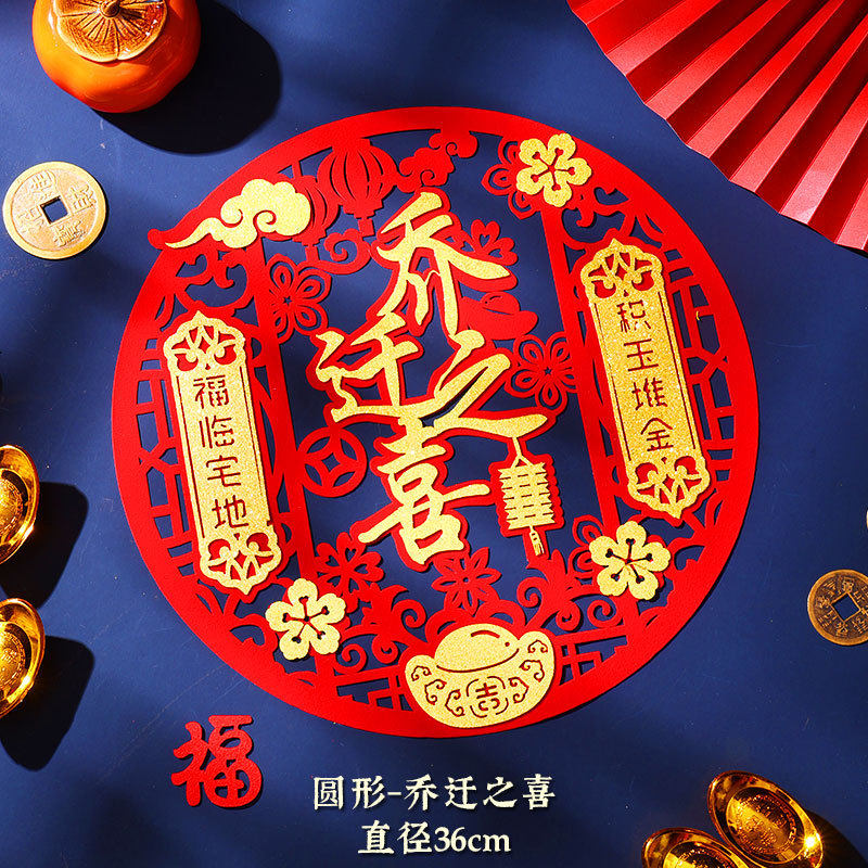 Joe Relocation Happy Decoration Door Post New Residence Moving Into House Ceremony Arrangement Supplies New Room Window Flower Cut Paper Fu Character Wall Sticker-Taobao