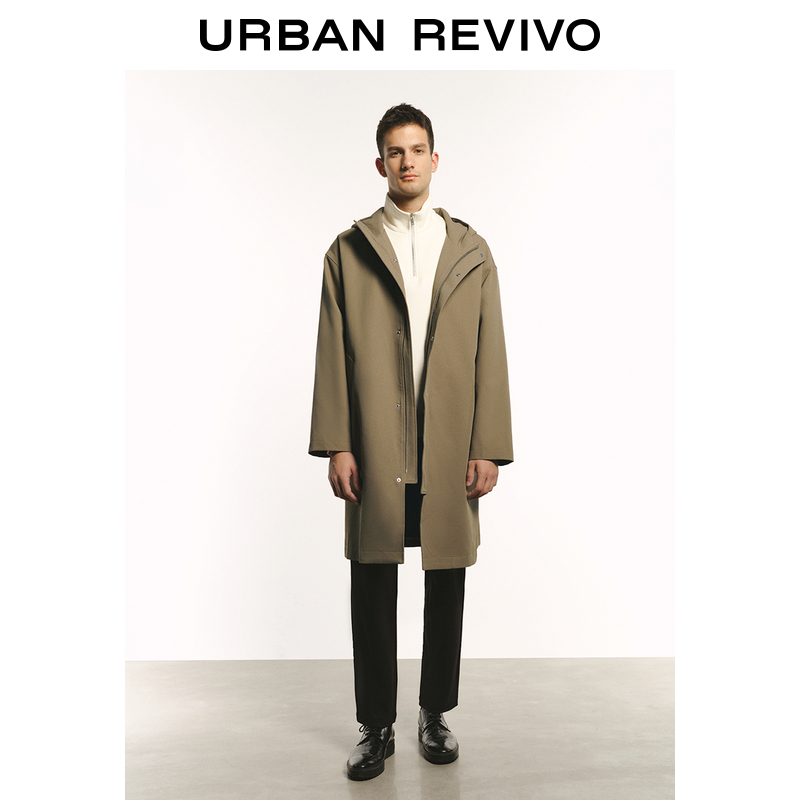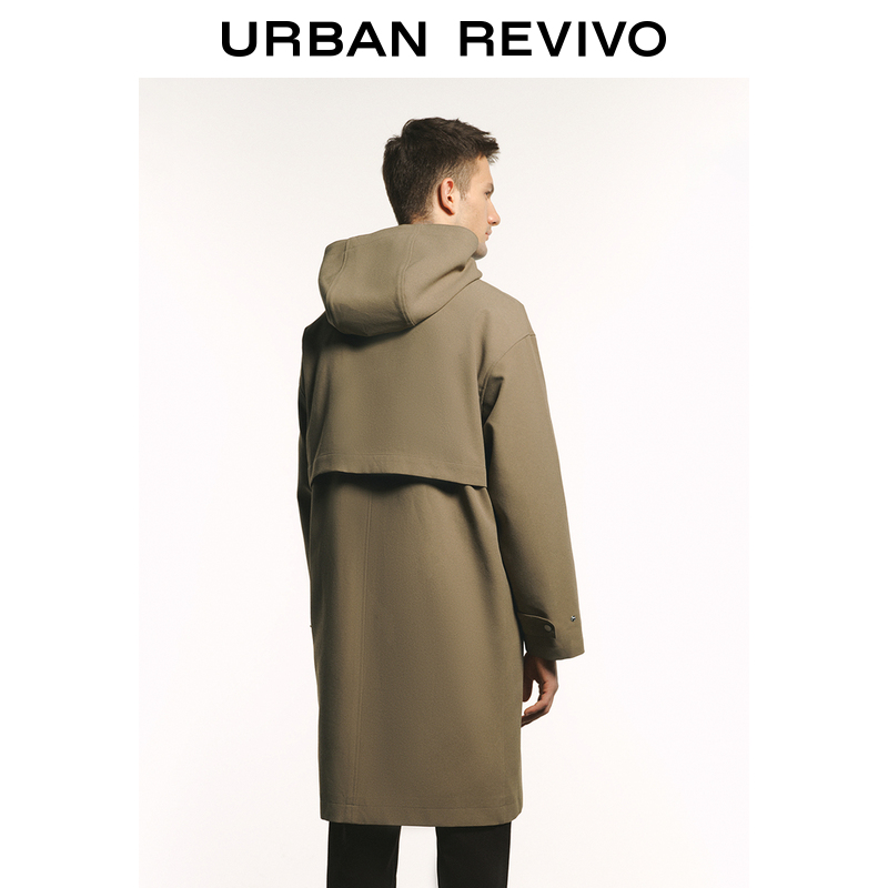 UR2023 Autumn Winter New Men's Fashion Boomer Retro Yinglun Wind 100 lap super loose with cap windcoat UMU130049 -Taobao