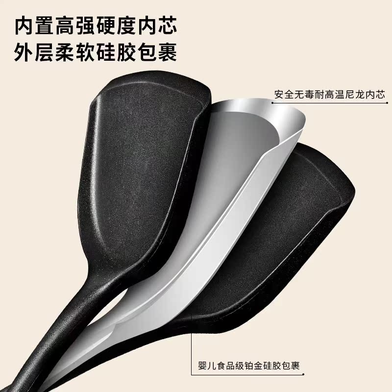 German Silicone Pan Shovel Non Stick Pan Special High Temperature Resistant Fried Vegetable Spade Food Grade Soup Leaking Spoon Kitchenware Suit 1102-Taobao