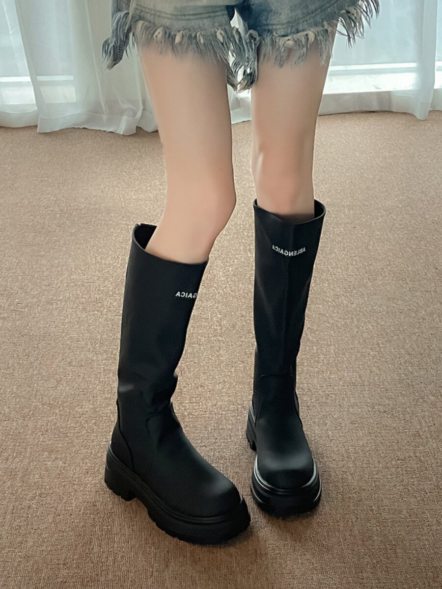 Tide card however knee-long boots woman 2023 new fall net red thin boots thick bottom heightening 100 lap sweets with cool wind boots-Taobao