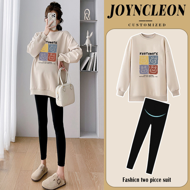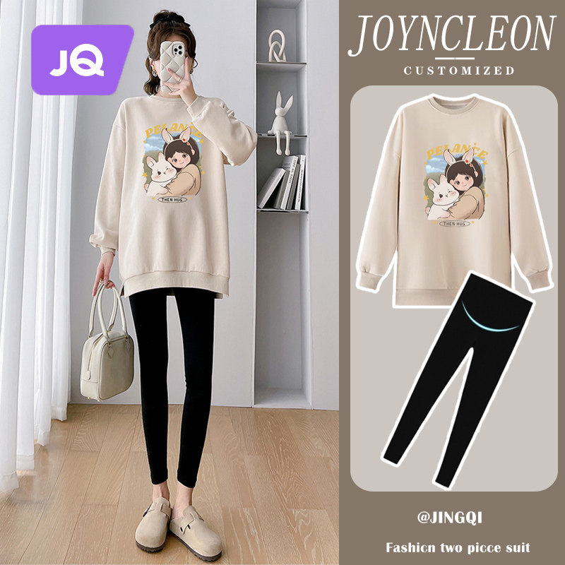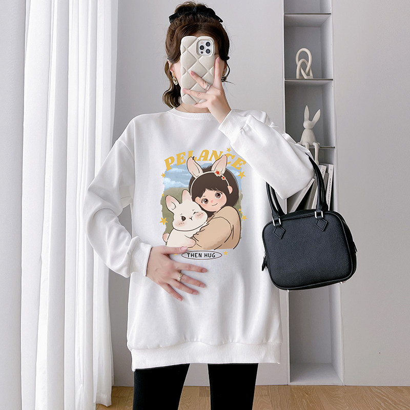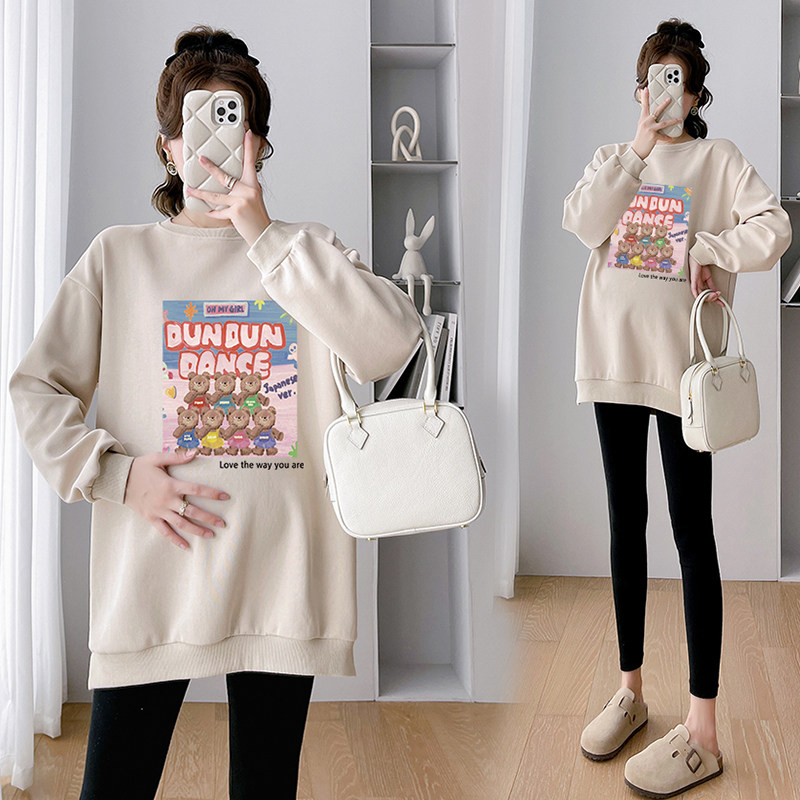 Pregnant women's autumn clothing 2023 new autumn and winter loose cartoon trendy casual big code pregnant women's clothing plus suede lady autumn winter money-Taobao