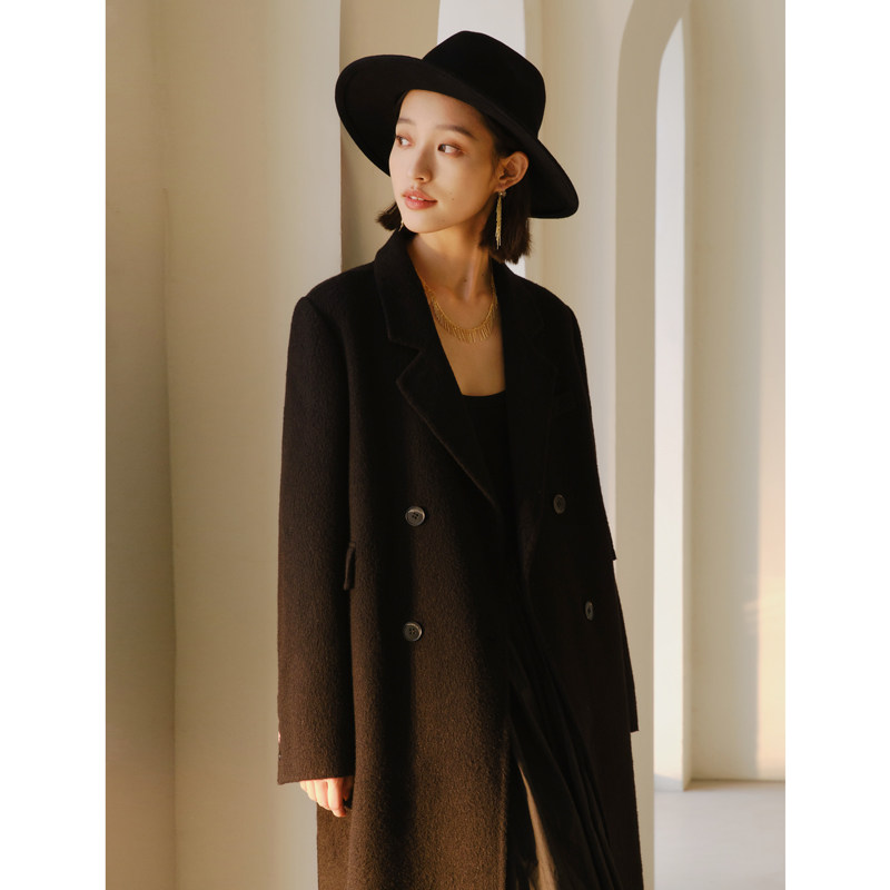 Self-coincidentally small sub positive shoulder 100% full wool double face Coat Woman 2023 Winter new Mao suits jacket-Taobao