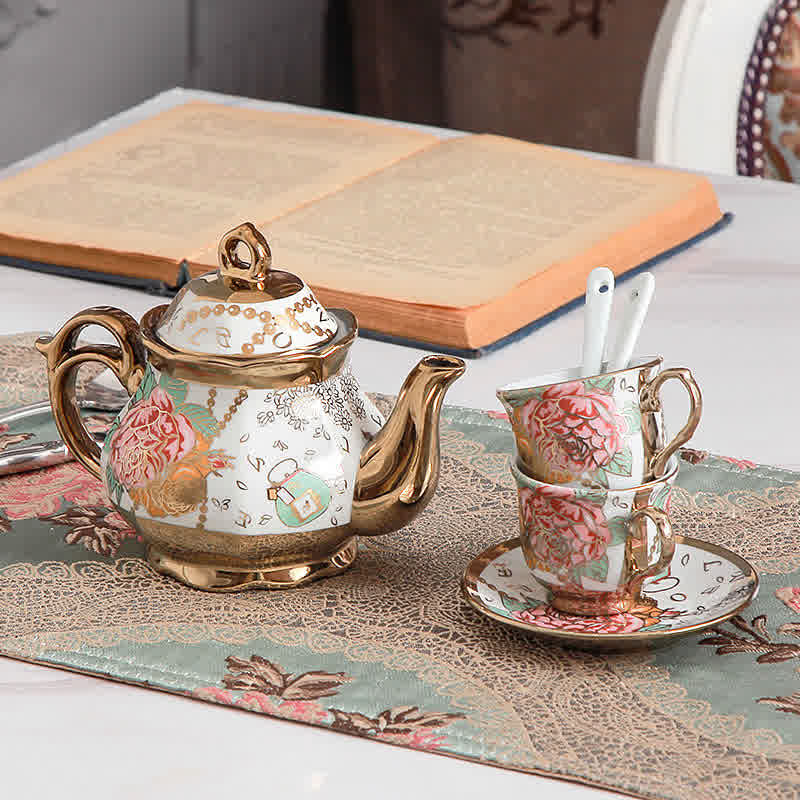 20 pieces of Eurostyle Tea Set Ceramic Coffee Cup Flower Tea English-style Afternoon Tea Set Retro Wedding Gift Water Cup-Taobao