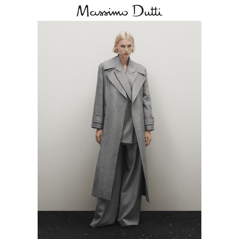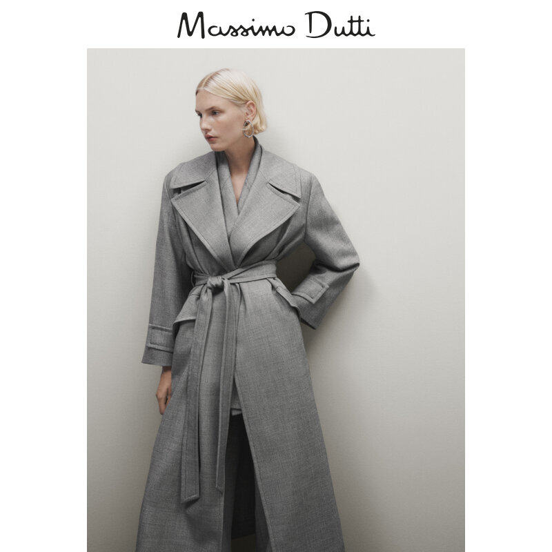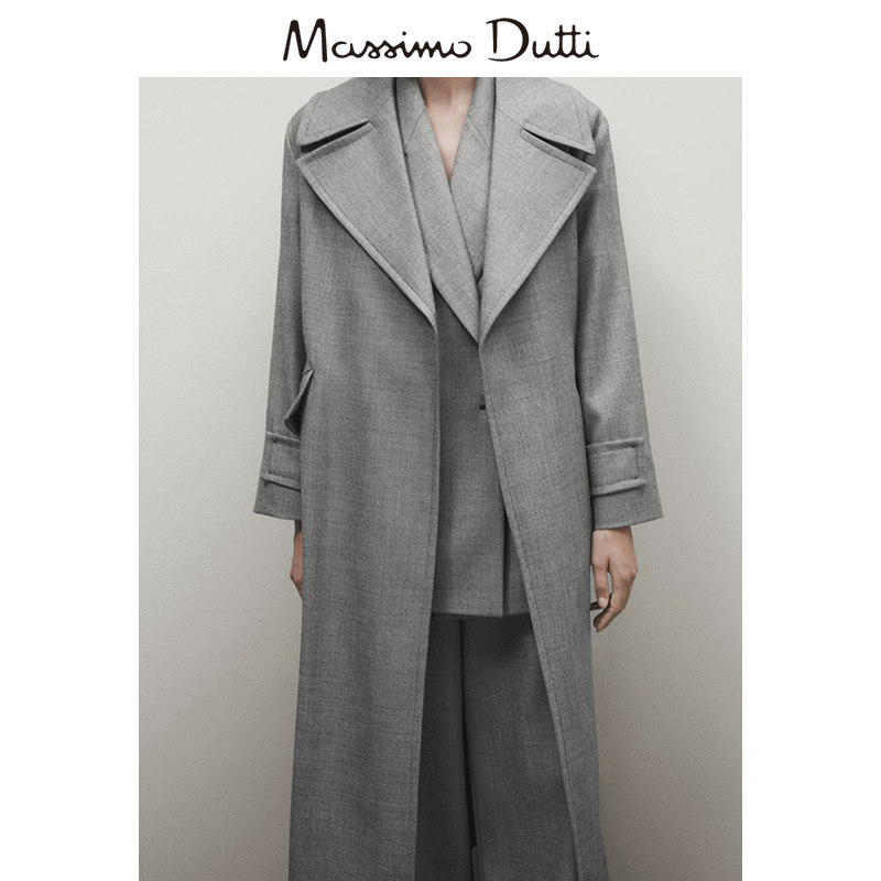 Discount season MassimmoDutti women's clothing 2023 new temperament extremely minimalist style grey long style wind clothes 06450555210-Taobao