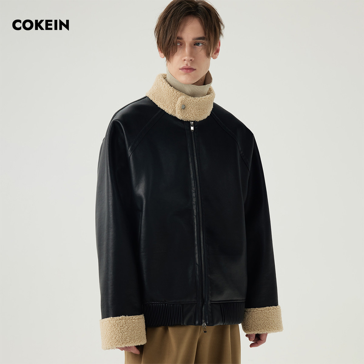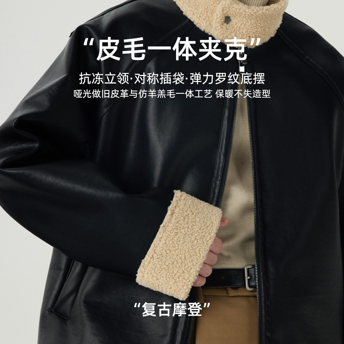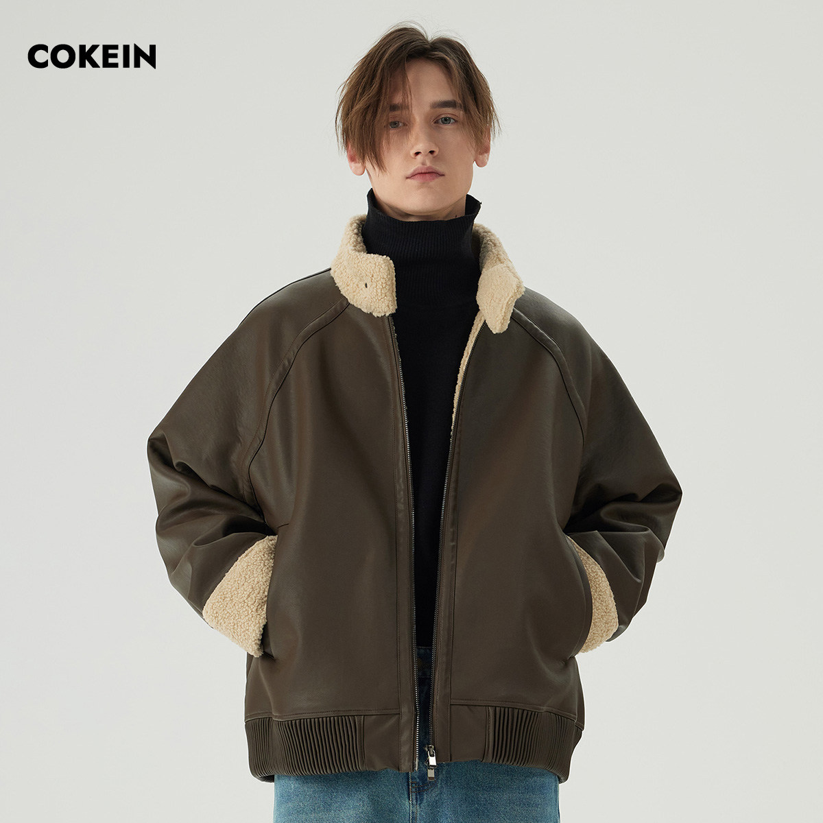 COKEIN fur coat winter fur integrated male retro jacket original minimalist casual lamb hair tide collar jacket-Taobao