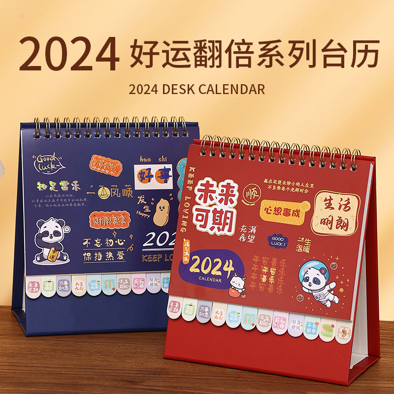 2024 new creative desk calendar cute cartoon lunar calendar mini calendar ins wind desktop pendulum notepad-Taobao
