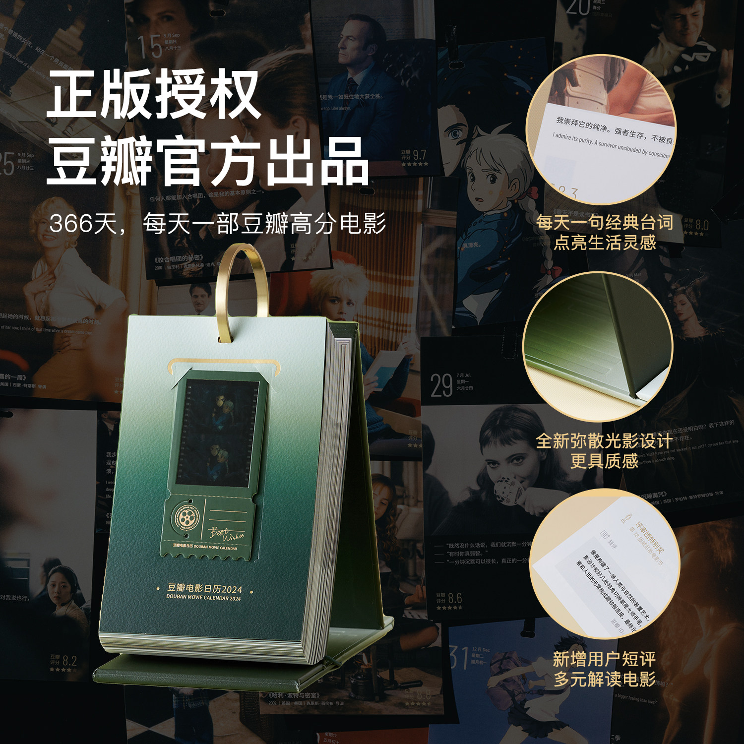 Bean Petal Movie Calendar 2024 New Year Calendar Classic Gift Box Art Page-turning Desk Calendar Christmas Birthday Present-Taobao