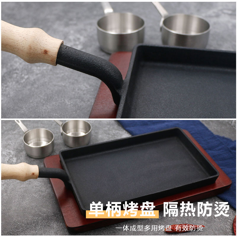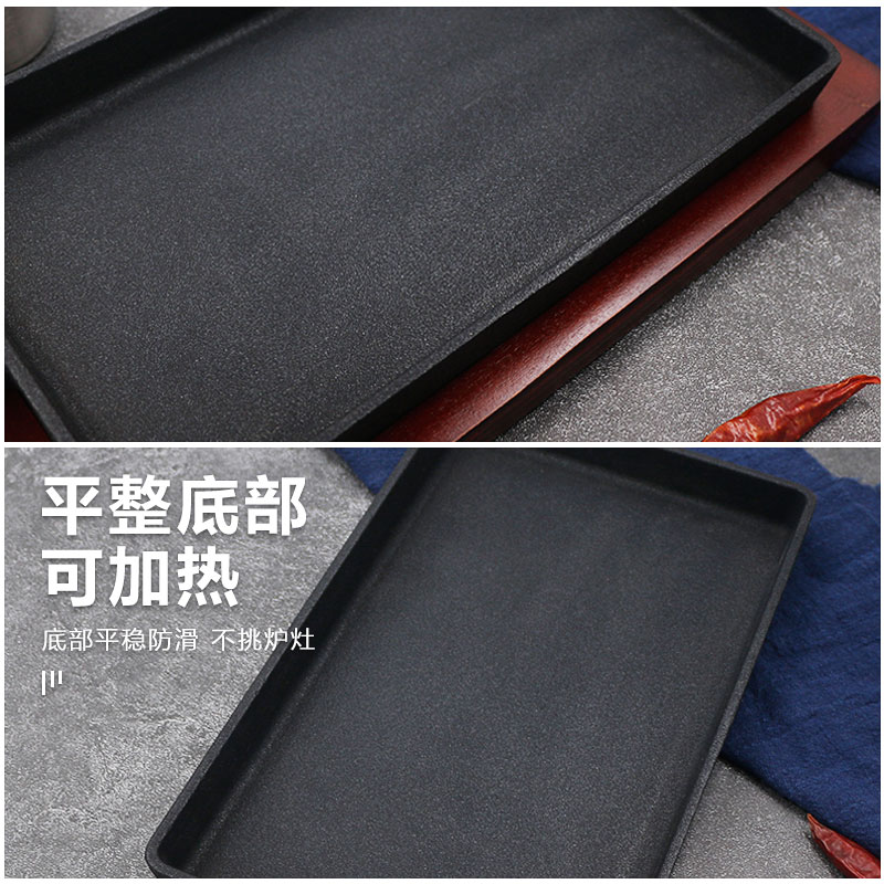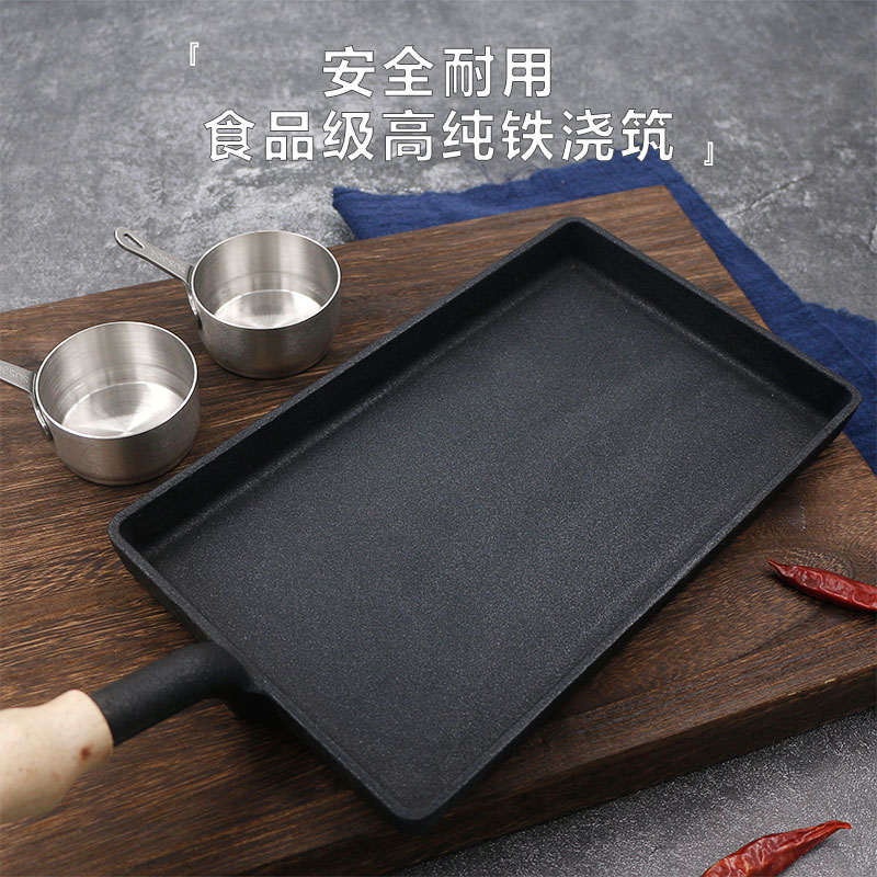 Rectangular single handle cast iron frying steak pan Commercial ovens cooking pan iron plate burning pan Home flat bottom roasting pan induction cookware-Taobao