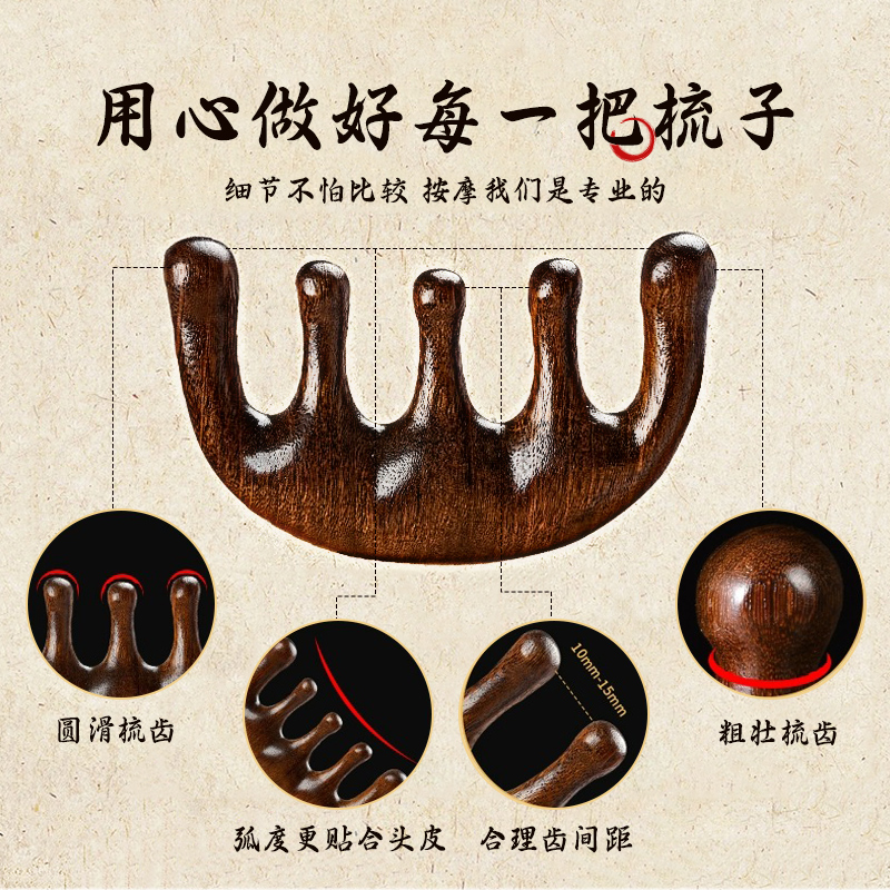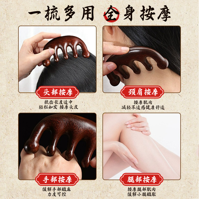 Massage Comb Children Sandalwood Head Meridians Comb Scalp Dredge Scraping Anti-Hair Loss Five Teeth Massage Five Fingers Comb 847-Taobao