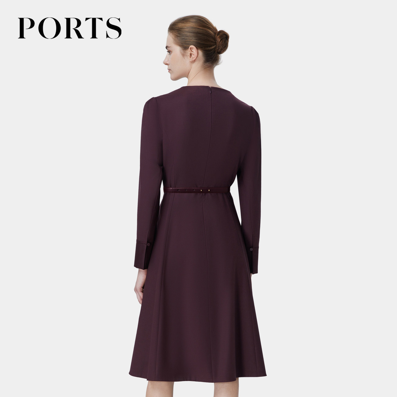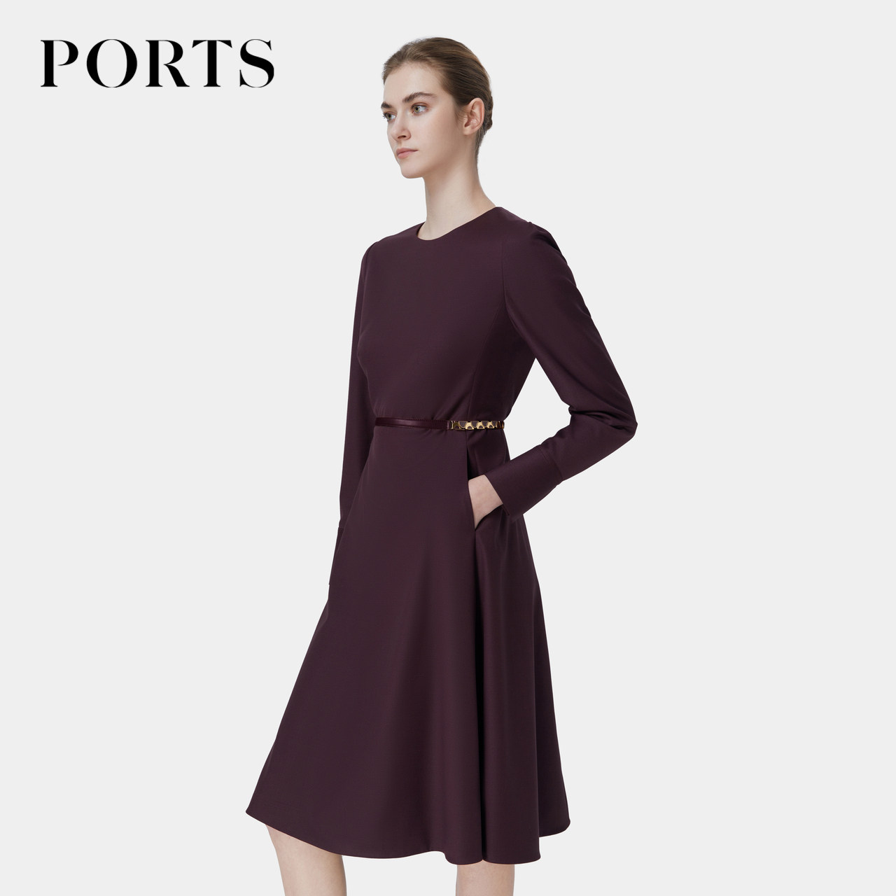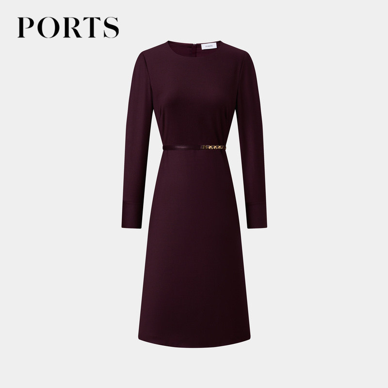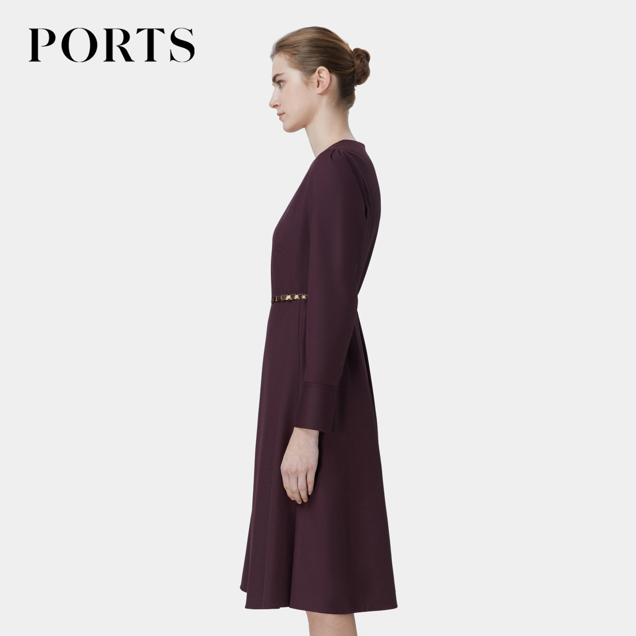 PORTS Ppose Woman's dress 2023 Winter new vintleness Gentle Wind Barexia Pearl Red Brief to collect waist one-piece dress-Taobao