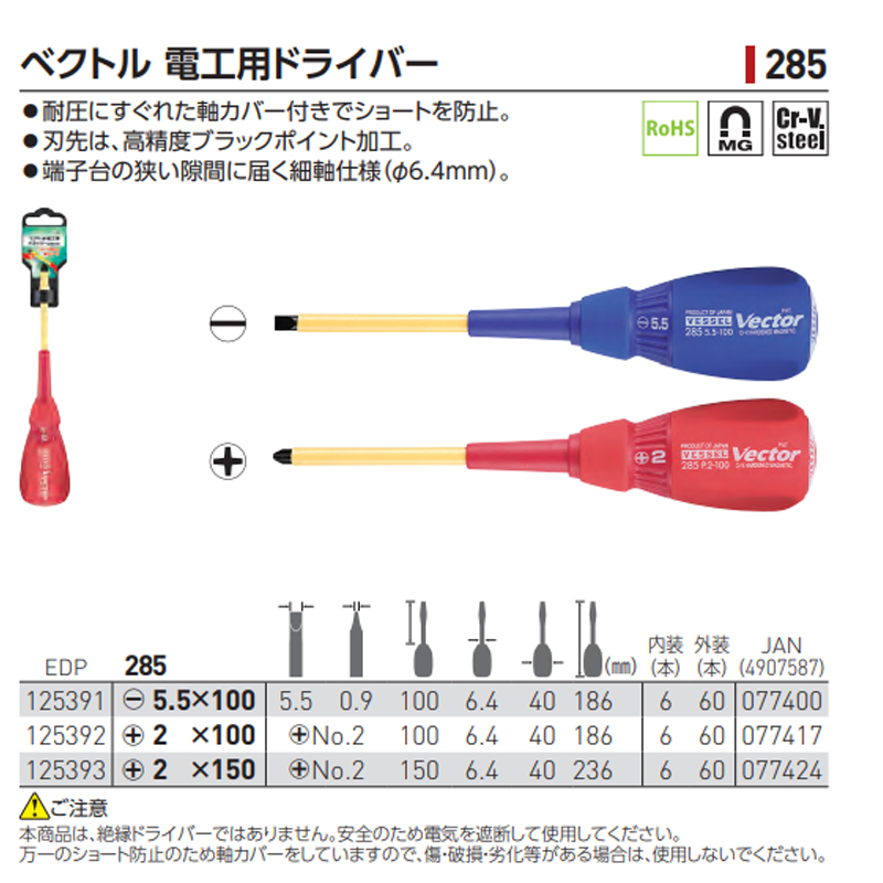 285 5 5x100mm word-lined insulated screwdriver 285 PH2x100mm cross insulated screwdriver 285 PH2x150mm cross insulated screwdriver