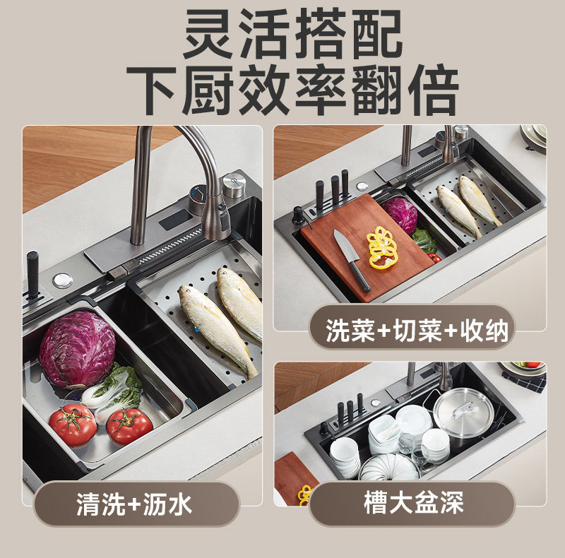 Whirlda Flying Rain Falls DIGITAL SINK LARGE SINGLE TANK 304 STAINLESS STEEL WASH BASIN KITCHEN HOUSEHOLD DISHWASHING TANK POOL-TAOBAO