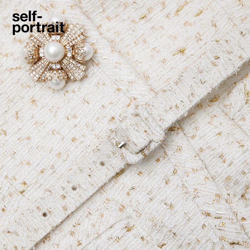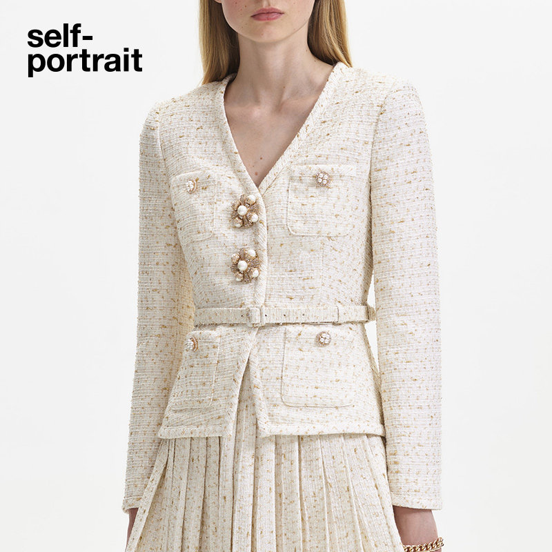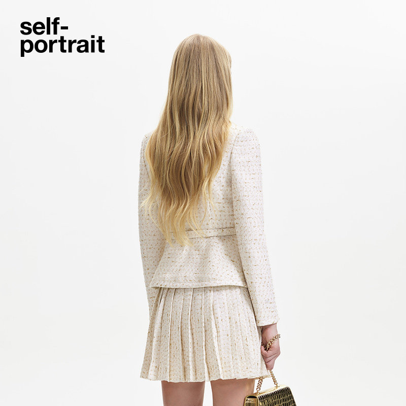 self-portrait 2023 autumn winter ivory white temperament elegant V collar button 100 pleated dress-Taobao