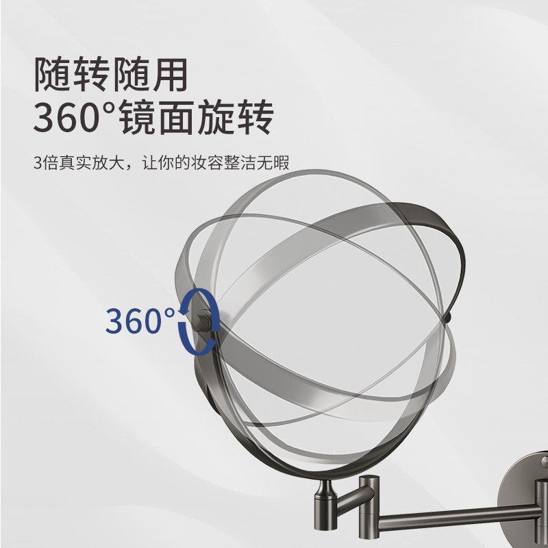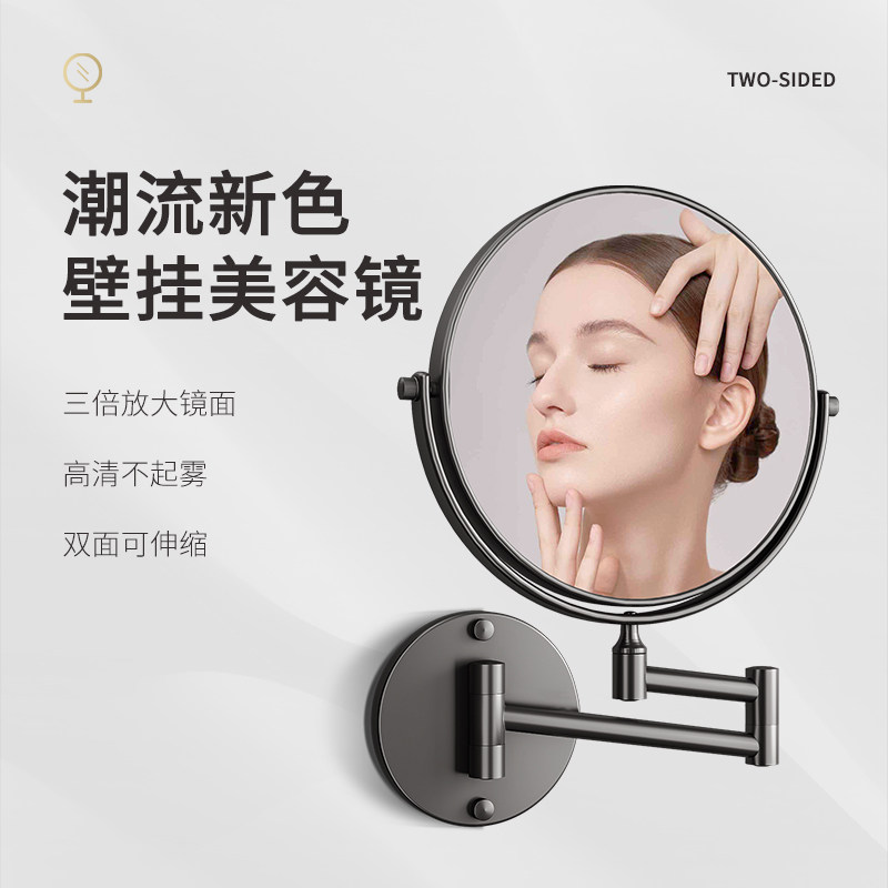 Makeup Mirror Bathroom Retractable Wall-mounted Toilet Free Cosmetic Mirror Folding Hotel Magnifier Son Gun Grey-Taobao