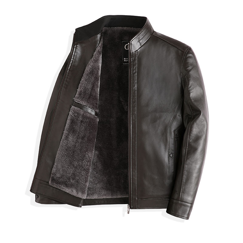 Red Dragonfly Men's Vertical Collar Leather Coat Jacket 2023 Winter New Men's Clothing Plus Thicken Dad Winter Dress Leather Jacket-Taobao