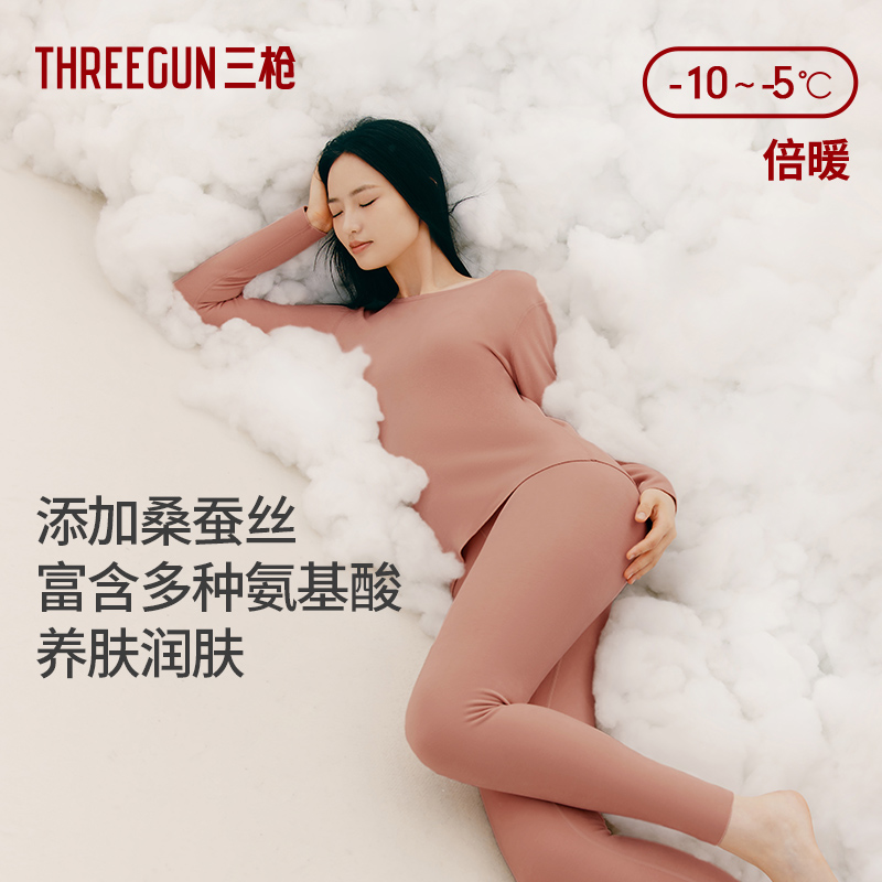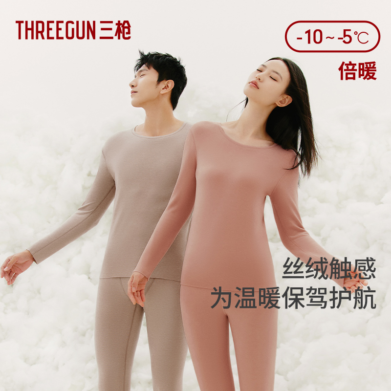 Three-gun warm underwear male velvet cotton antibacterial far infrared heating suit Female anti-static mulberry silk moisturizing skin thickened-Taobao