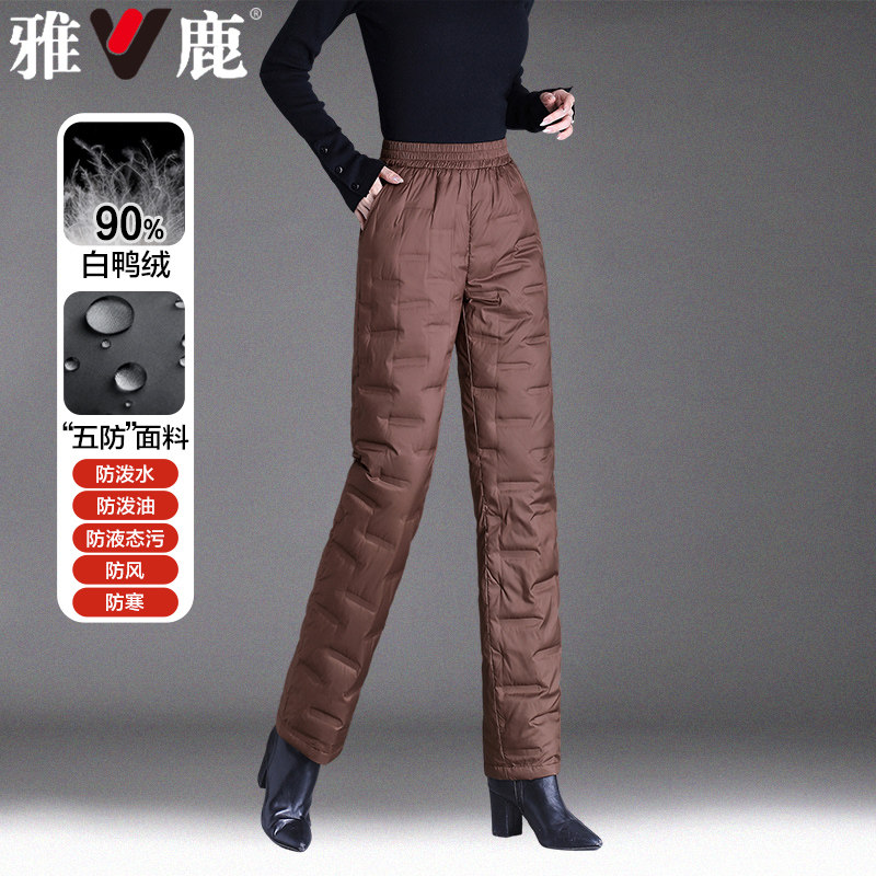 Yose Mother's Down Pants Outside Wearing Winter High Waist Loose New 50-year-old 60 middle-aged Thickened Straight Drum Cotton Pants-Taobao