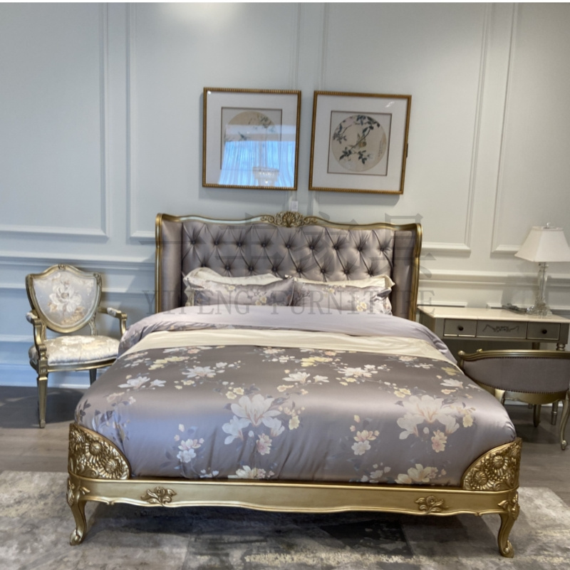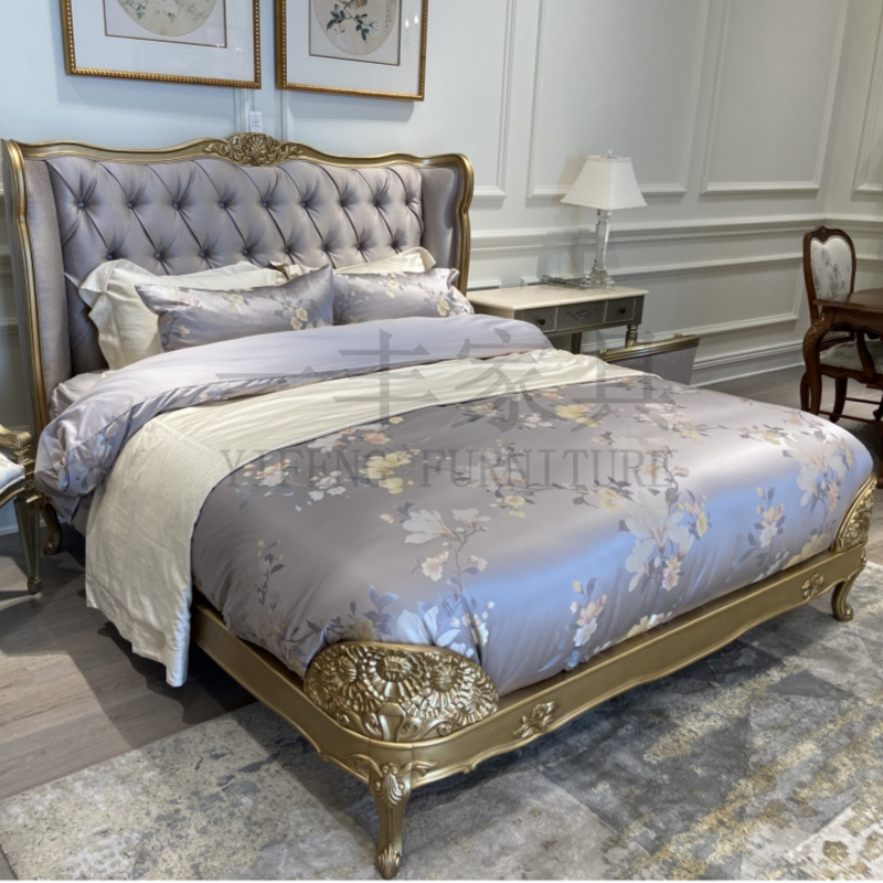 American light and luxurious double bed retro luxurious solid wood bed European style palace Mekvay Viennale Soft bunk beds Beauty family sculptures-Taobao