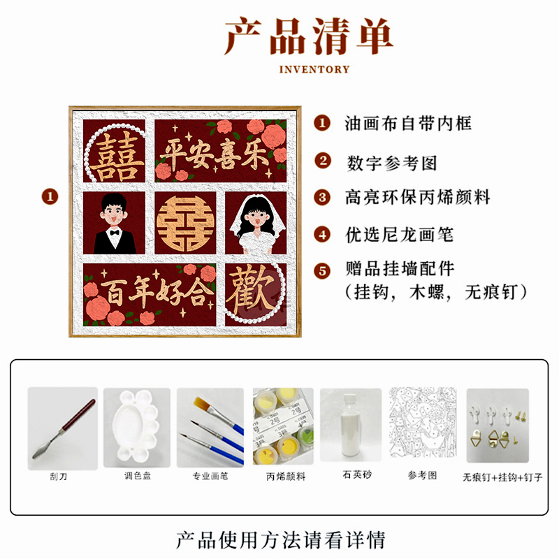 Wedding Stereocreme Painting Diy Hand Filled Color Digital Oil Painting Engagement Newlyweds For Gift Quartz Sand Materials-Taobao