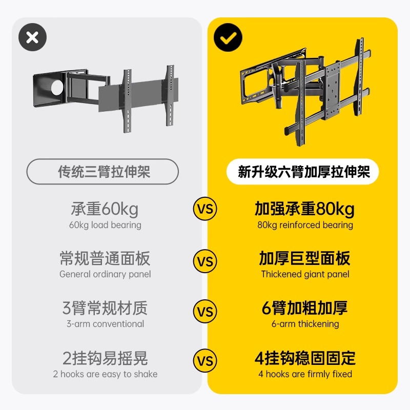 (55-inch dedicated) Upgrade Six-arm full brand General (65-inch exclusive) Upgrade Six-arm full brand Universal (75-inch private) Upgrade Six-arm full brand Universal (80